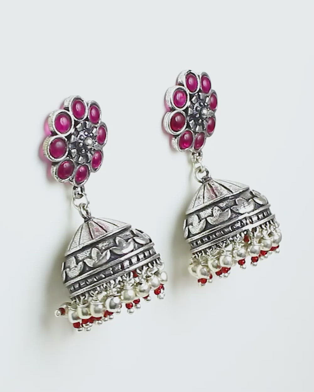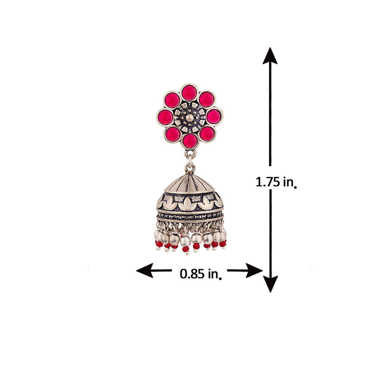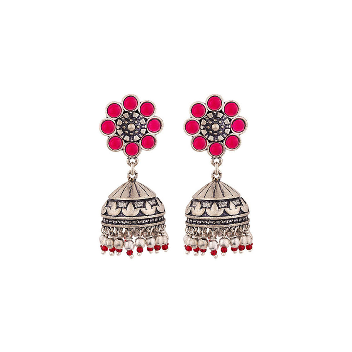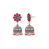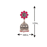 Pink embellishments adorned jhumka style earrings. Crafted from brass and oxidized silver plated. Pair with a casual saree or ethnic skirt. This piece of jewelry comes with the Voylla assurance of quality and durability. Caring for your fashion jewelry: We,...