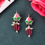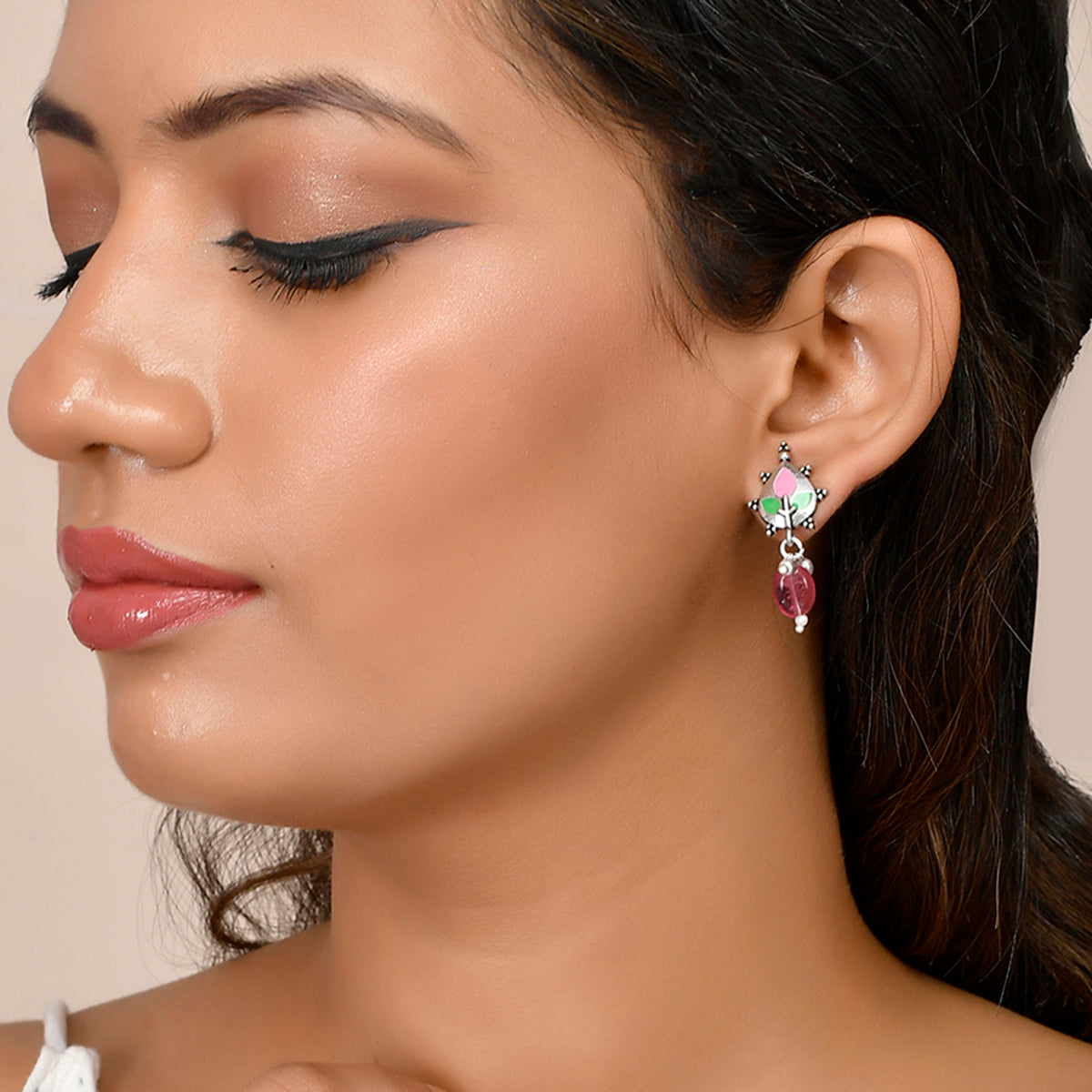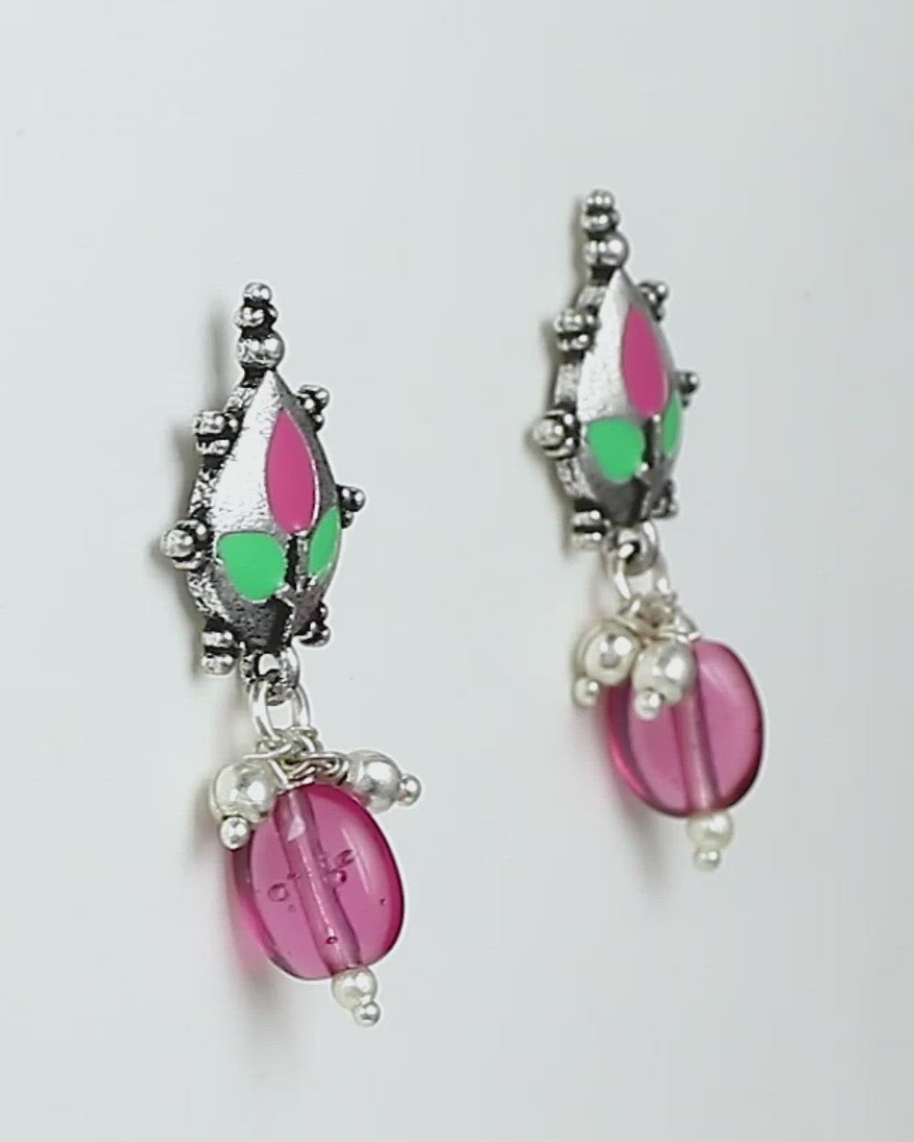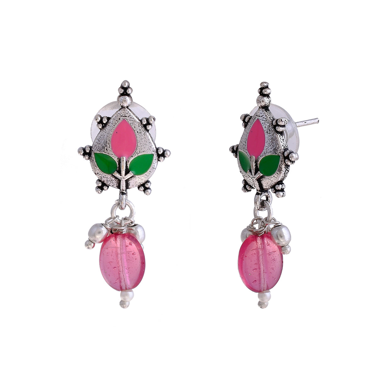 Enamel and beads embellished, nature inspired earrings made from brass. Wear the oxidized silver plated pair with a trendy summer dress. This piece of jewelry comes with the Voylla assurance of quality and durability. Caring for your fashion jewelry: We,...