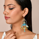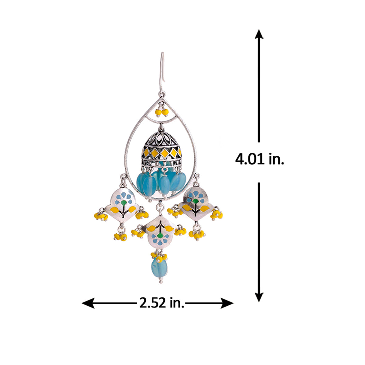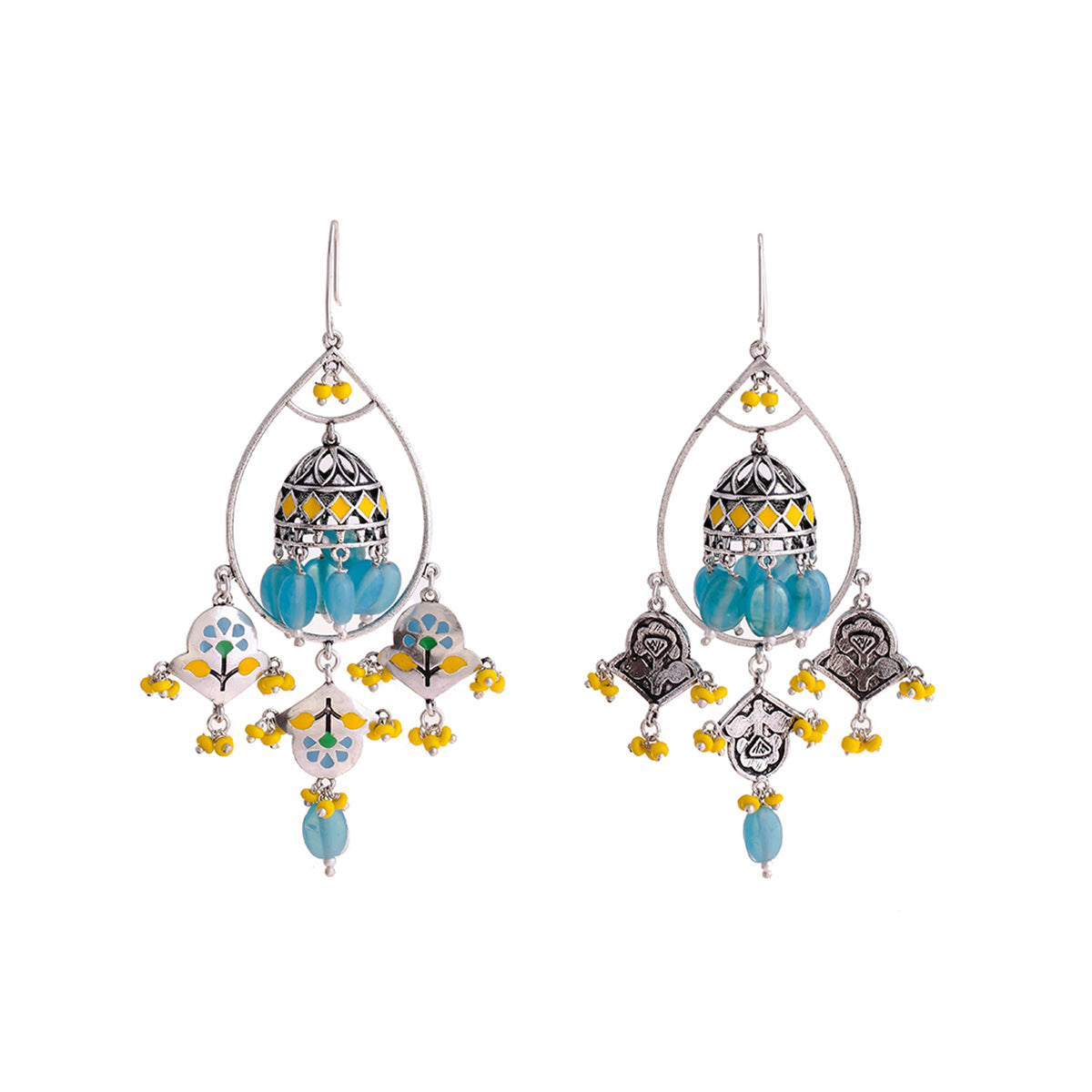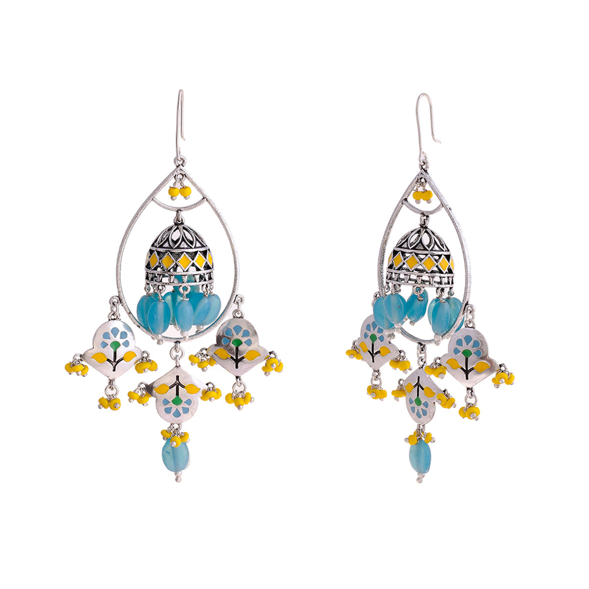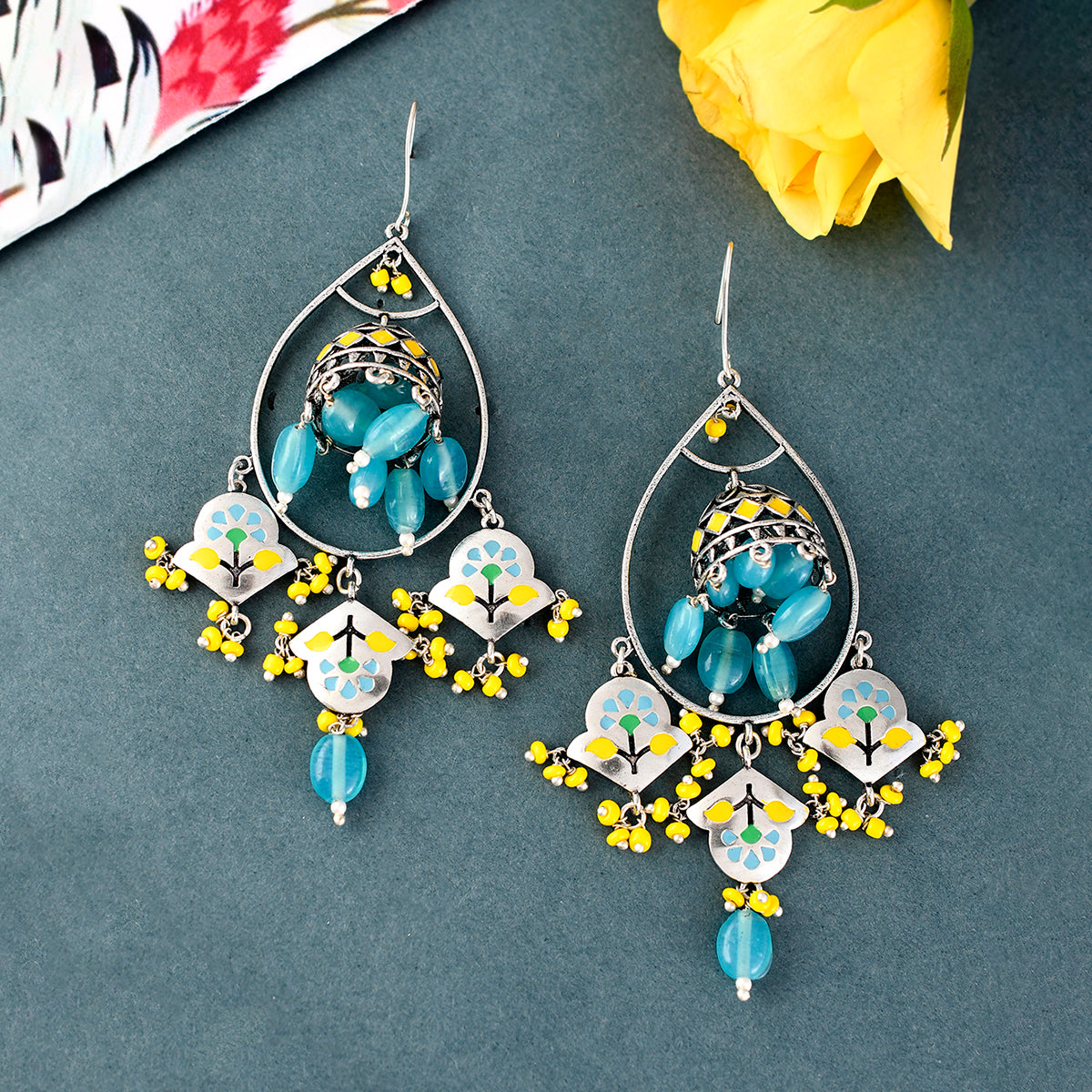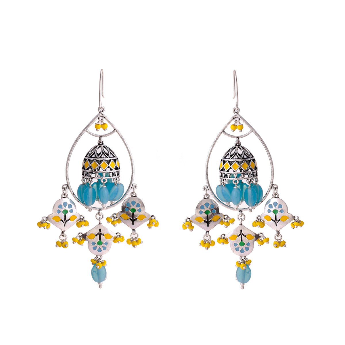 Flower Jhumka earrings inspired by the mesmerrising Sanganeri prints. Silver plated and hand crafted from brass. Perfect for flowy summer dress.
