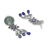 Festive Hues Blue Enamel Mirror Detail Faux Pearls Adorned Silver Oxidised Jewellery Set