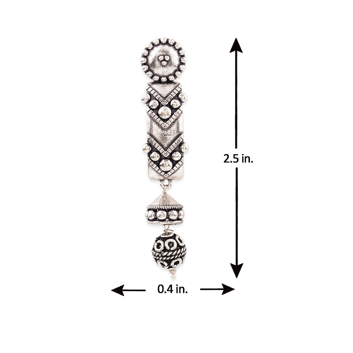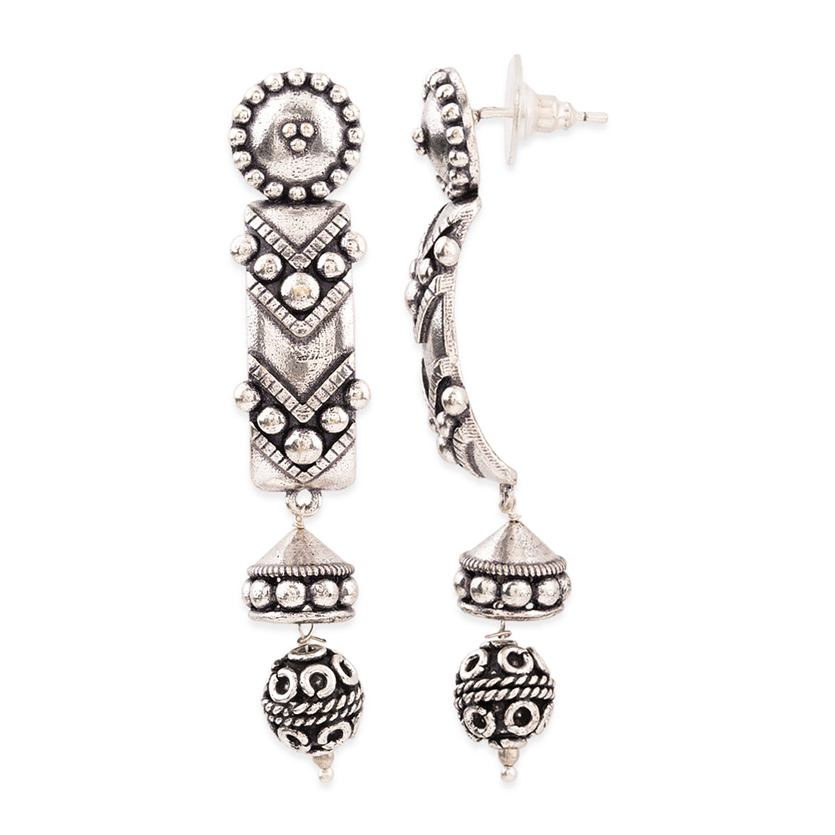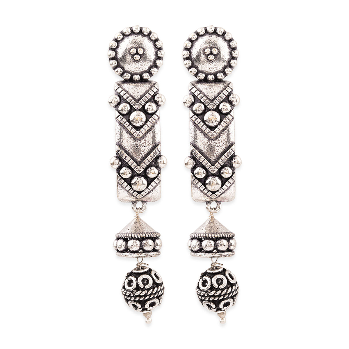 Rava Ball Long Silver Oxidized Earrings
