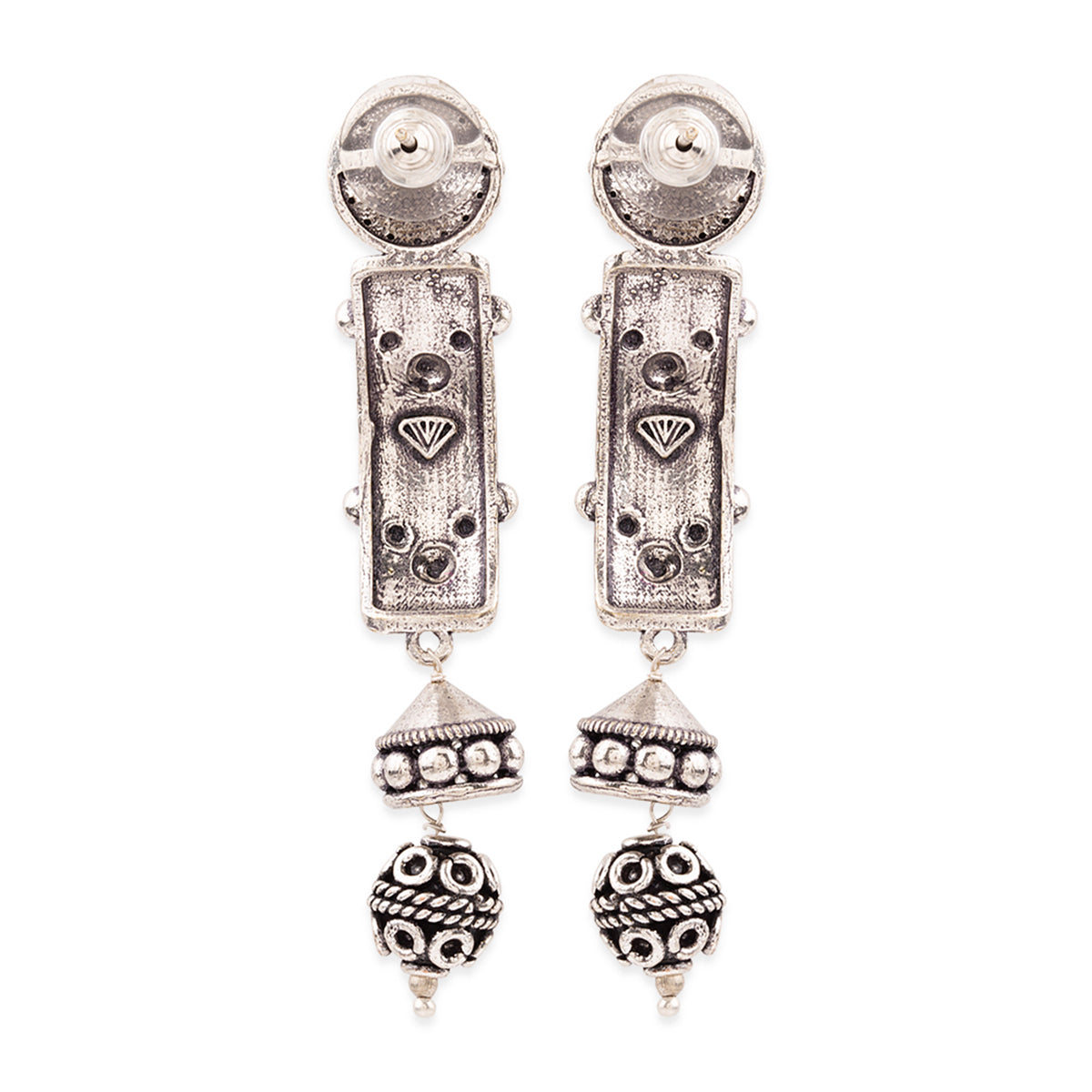 Inspired by classic tribal jewelry, these beads embellished earrings have been fashioned out of brass. Oxidised silver plated and perfect for everyday and even work wear. This piece of jewelry comes with the Voylla assurance of quality and durability. Caring...