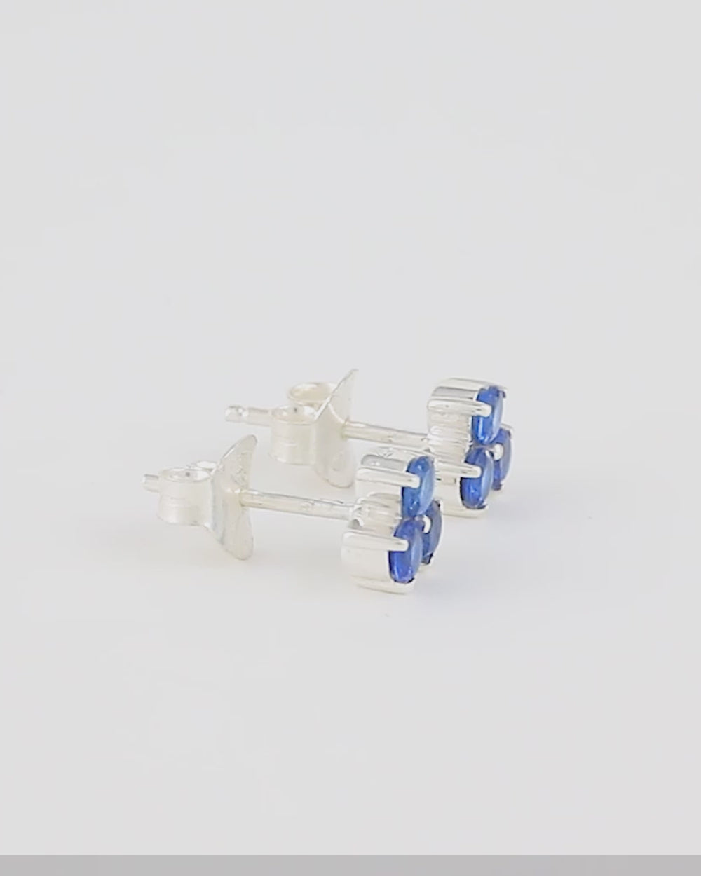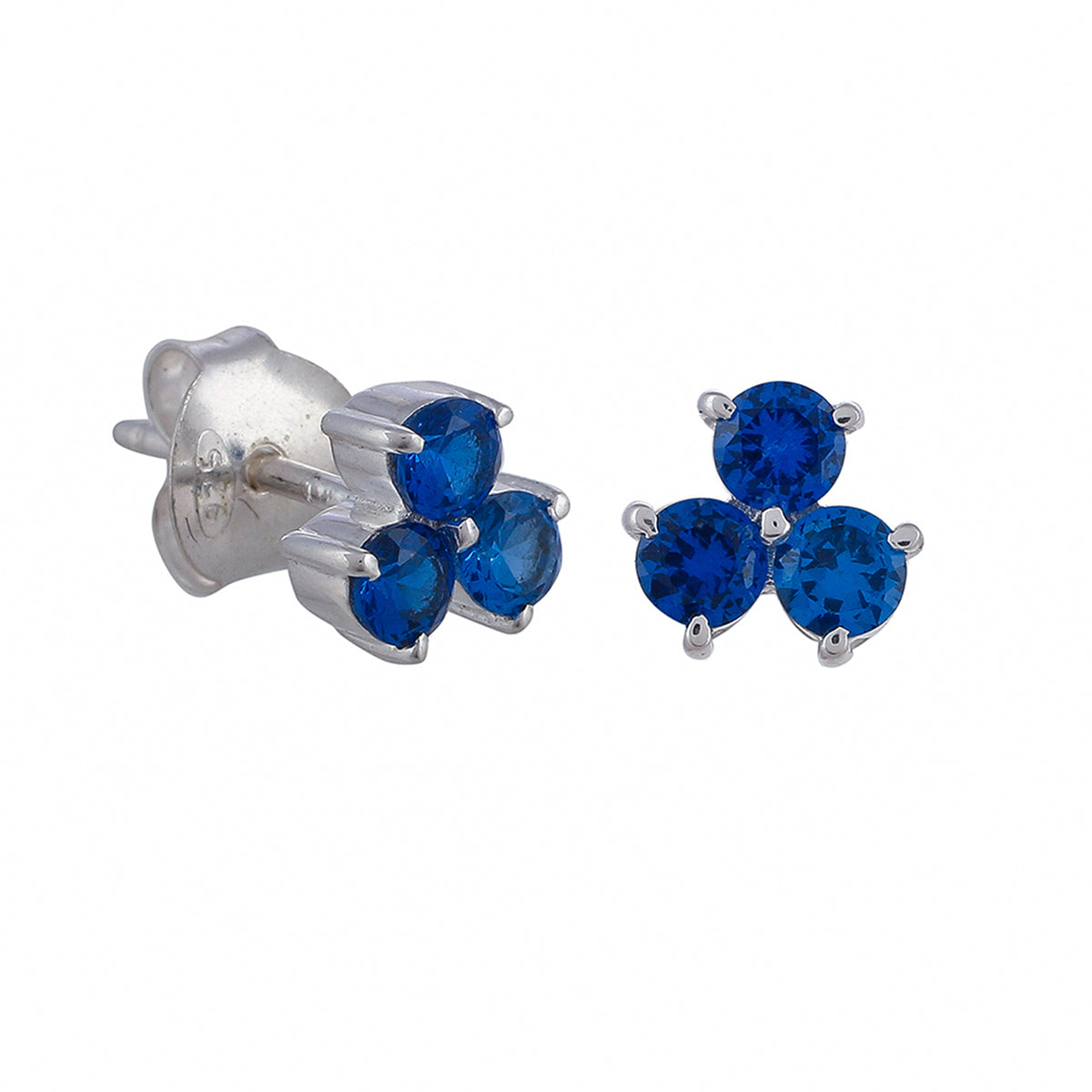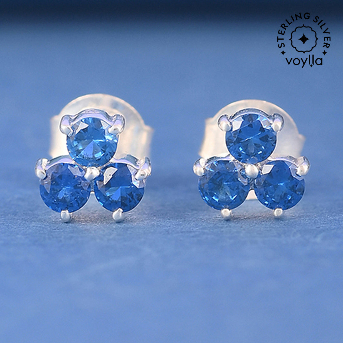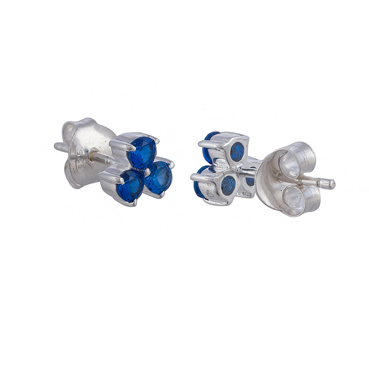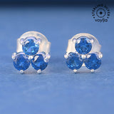 Blue Stone Decked 925 Sterling Silver Ear Studs