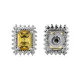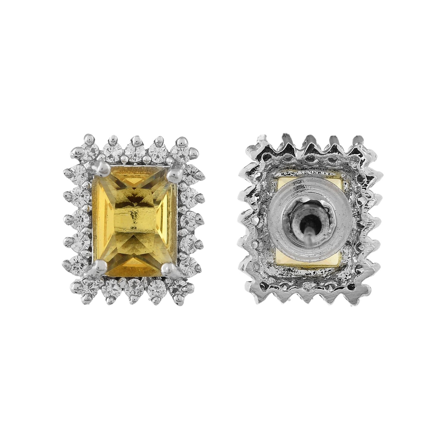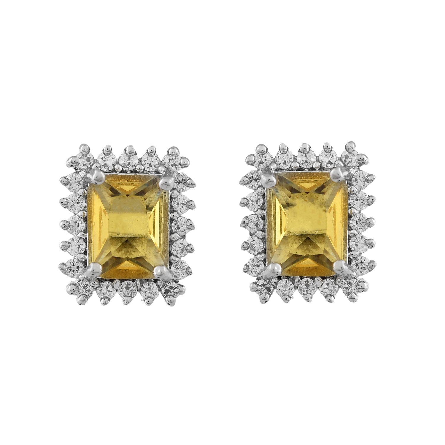 These exquisite studs earrings for women feature a timeless design that exudes sophistication and charm. Crafted from high-quality brass material, each earring is meticulously plated with white rhodium, giving it a lustrous silver-tone finish that complements any outfit. At the center of these small earrings for women lies a stunning rectangular American Diamond, its facets catching the light to create a dazzling display of brilliance. The stone is framed by a halo of delicate round American Diamonds, enhancing the overall sparkle and making these earrings perfect for traditional events or as party wear earrings for women. The yellow hue of the central stone adds a touch of femininity and elegance, making these studs earrings for women an ideal gift for wife, sister, or as a cherished present for Rakhi. Whether worn to a wedding wear occasion or styled as cocktail party accessories, these voylla earrings for women are sure to turn heads and start conversations. Their versatile design also makes them suitable as everyday wear or as special gifts for girls who appreciate understated luxury.