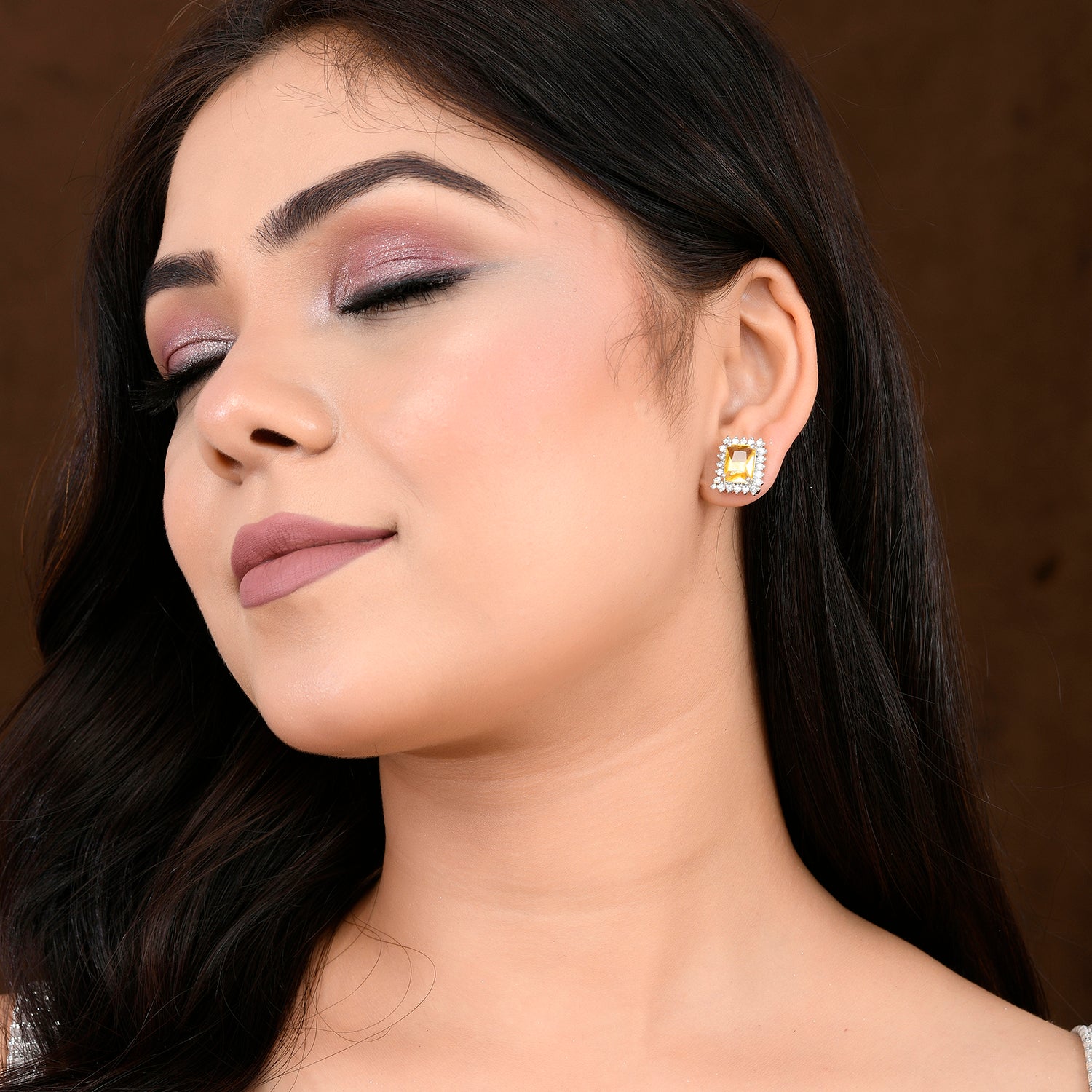Sparkling Elegance Yellow American Diamond Studs Earrings