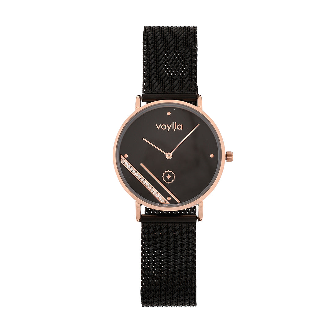 Voylla Black Dial Watch with Elegant Studded Design