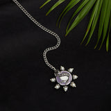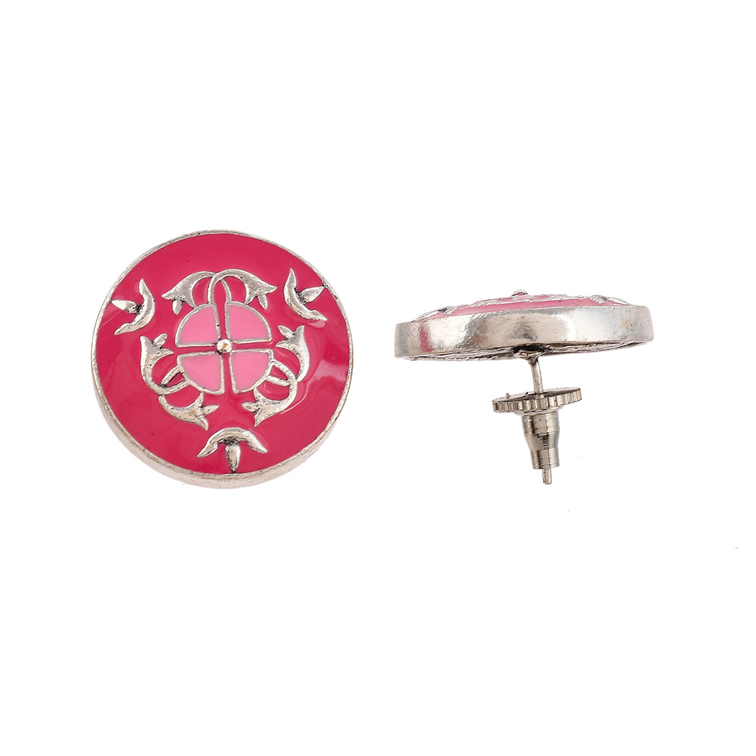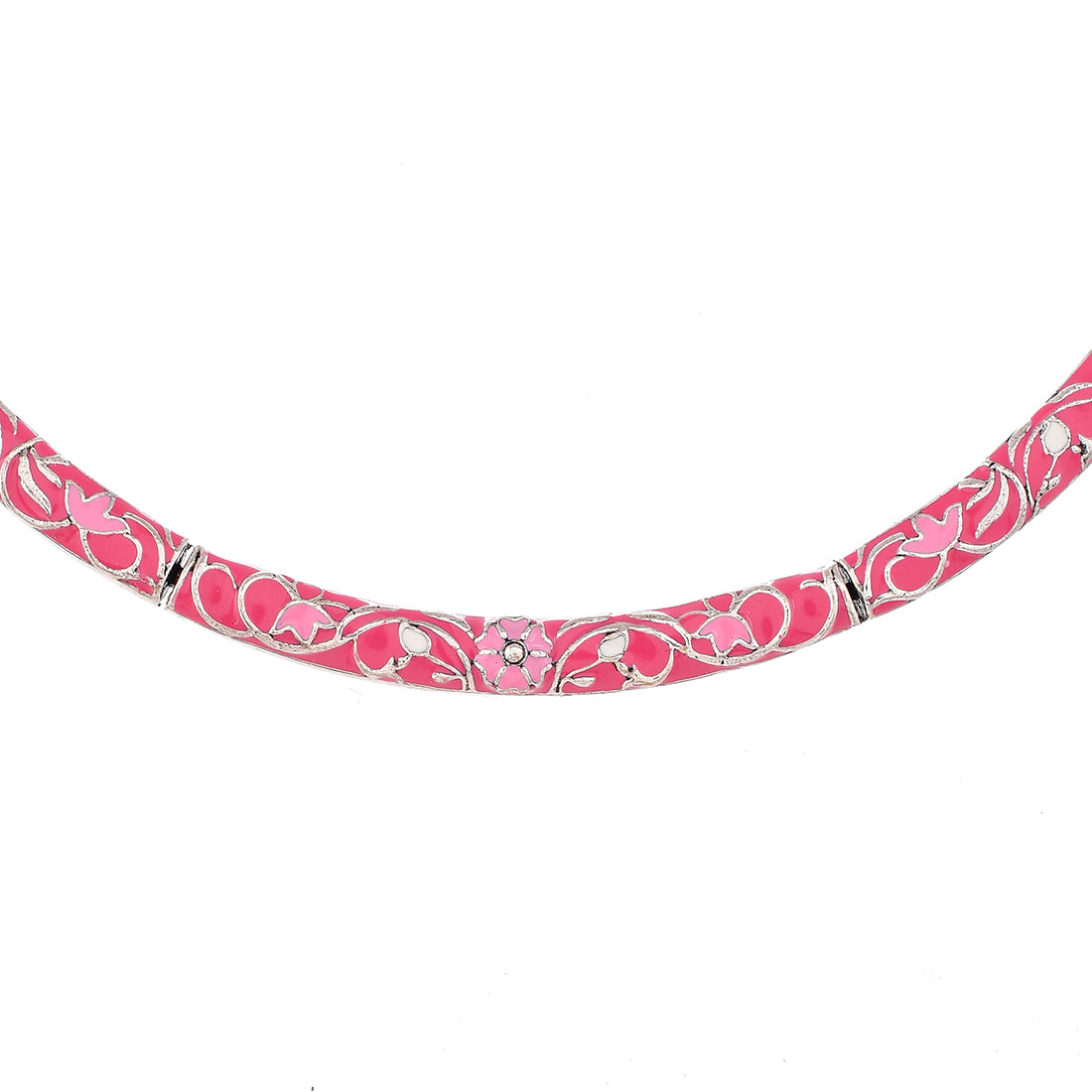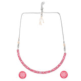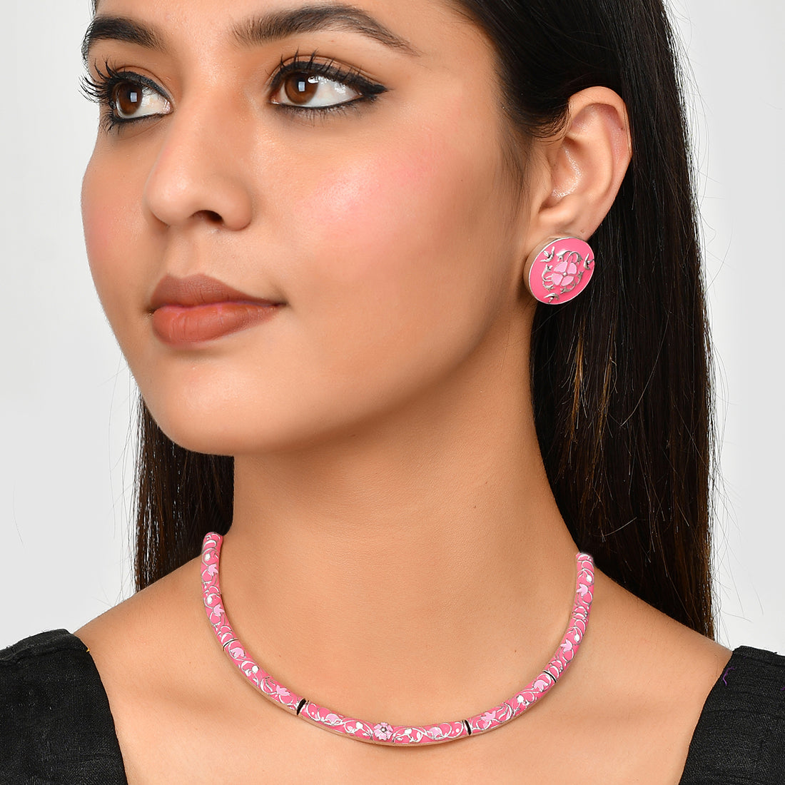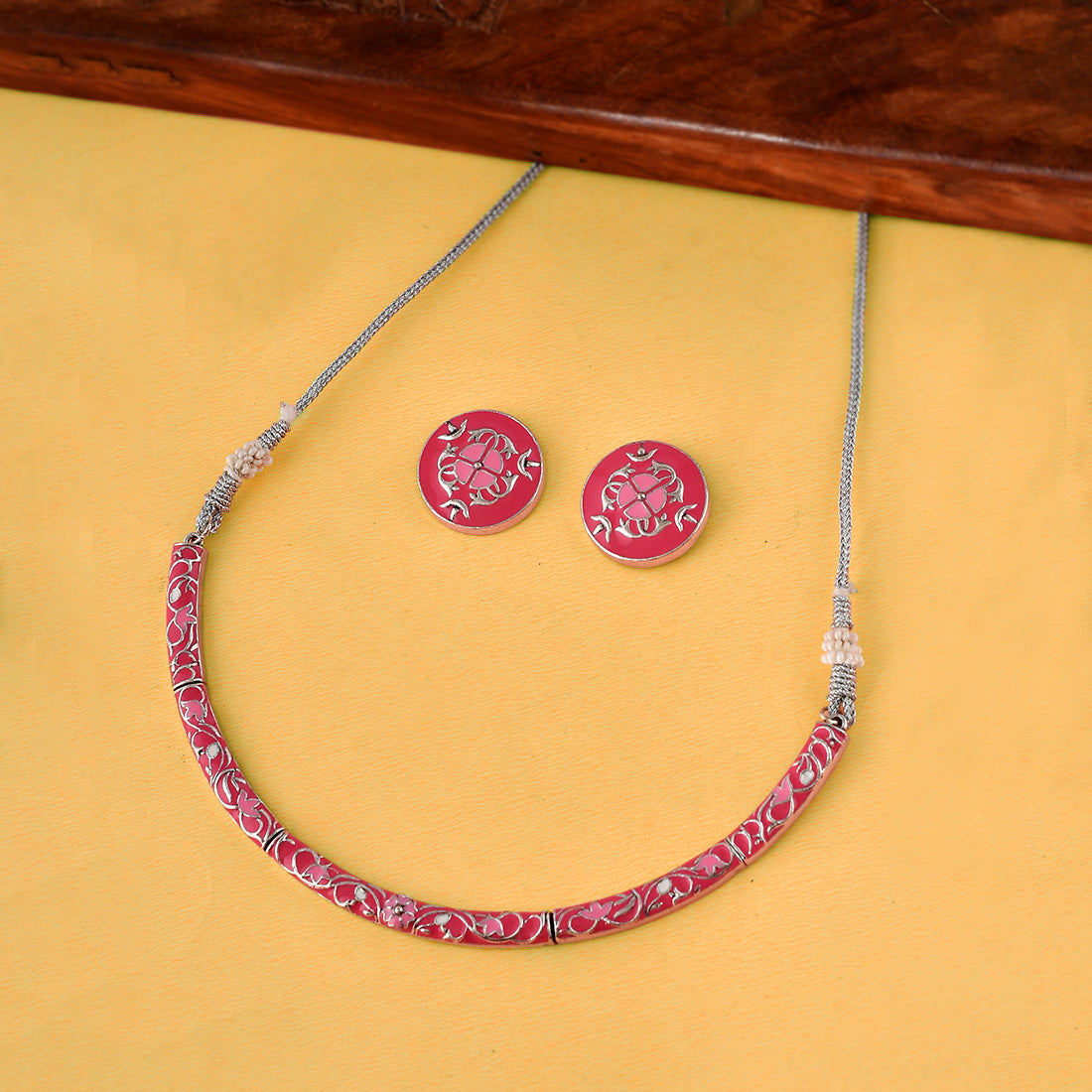 Enameled Elegance Pink Silver Oxidized Necklace Set