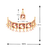 Add an exceptional grace and charm to your feminine look through this gold toned maang tika. Get this exclusively designed accessory today.Caring for your fashion jewelry: We, at Voylla, take care of every piece of jewelry so that you don't...