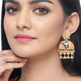 Shwet Kamal Peacock Motif Faux Pearls Adorned Silver Plated Drop Earrings