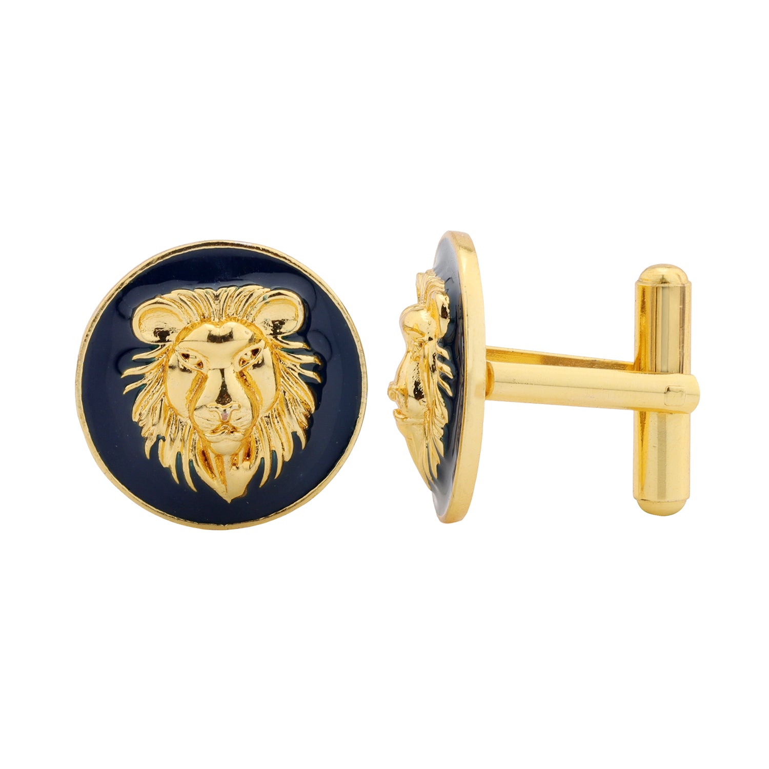 Bold, commanding, and deeply symbolic, the Kings of Rajasthan Lion Aura Cufflinks celebrate strength, leadership, and royal pride. Part of the timeless Queens of Rajasthan collection, these cufflinks are inspired by the lion, an emblem long associated with Rajput bravery, authority, and protection. Seen in royal crests, palace carvings, and ceremonial insignia, the lion represents the fearless spirit of Rajasthan’s kings. Crafted in premium brass and finished with rich yellow gold plating, the cufflinks feature a sculpted lion motif set against a deep black enamel base. The contrast of warm gold and bold black creates a striking yet elegant statement, perfect for men who prefer refined power in their accessories. Designed for modern grooms and gentlemen, these gold cufflinks for men add a regal edge to both traditional and formal ensembles. Whether worn as shirt cufflinks for men, styled as kurta buttons for men, or gifted as a keepsake, the Lion Aura Cufflinks bring heritage, symbolism, and sophistication together, making them an unforgettable addition to any wedding wardrobe.