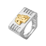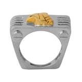 Buy this rashi designer ring designed for you from Voylla men's collection. The shiny surface with silver plating renders the aquarious zodiac symbol with gold plated material. A striking new addition for your accessory box!