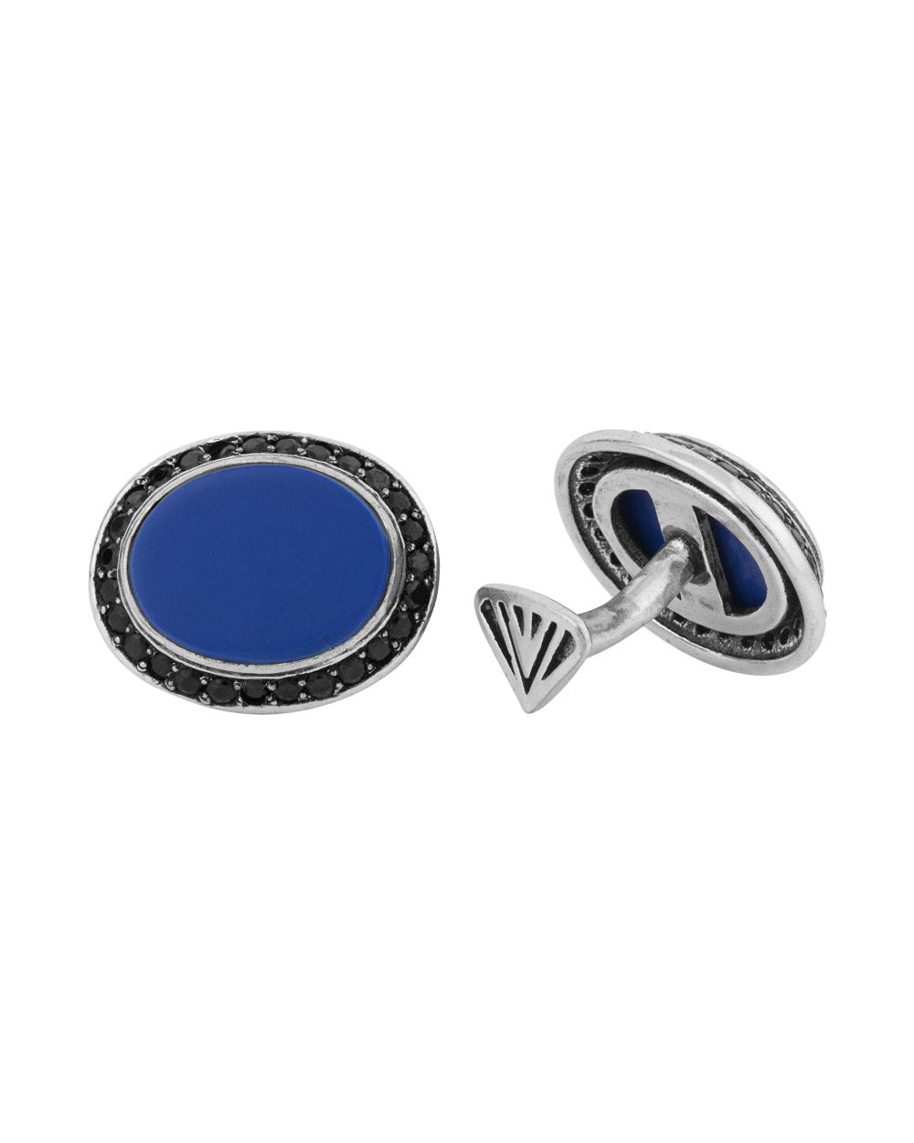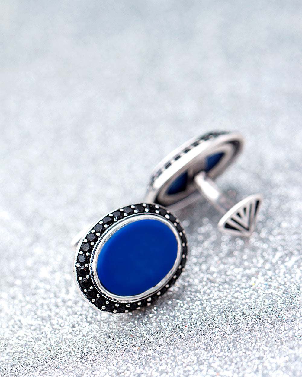 The Accessory: Take your style beyond the standard with these blue stone and black American Diamond-studded cufflinks. How to Wear It: Designed to offer opportunities for personalizing outfits in a fun way. Own the Part: Perfect accompaniment for special occasions....