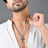 Unleash the power of mythical elegance with Voylla’s latest addition to its men’s collection, a captivating black pendant that exudes strength and style. This brass-crafted masterpiece is designed for the modern man who dares to stand out. The pendant features an intricately detailed dragon, a timeless symbol of wisdom and power, poised in mid-flight with wings outstretched, ready to conquer the skies. Its dark hue adds a touch of enigmatic charm, making it a versatile accessory suitable for casual wear or as a distinctive piece for office attire. Whether you’re traversing the urban jungle or exploring distant lands, this pendant is your perfect travel companion. With its bold design and striking black finish, it serves as an ideal gift for men - be it your brother or boyfriend - especially as a thoughtful Rakhi gift that celebrates the bond between siblings. Let this Voylla dragon pendant be more than just an accessory; let it be an expression of individuality and personal legend.