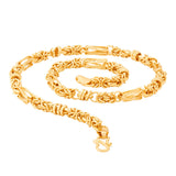 "Brass has been used in the making of this solid link chain, which has been designed for comfort and style. With a stunning yellow gold plating and flawless design execution, this versatile men's jewelry will make a worthy addition to your collection. To make your accessories last longer avoid harsh chemicals and moisture. Keep dry, clean with dry cloth and wear with panache.