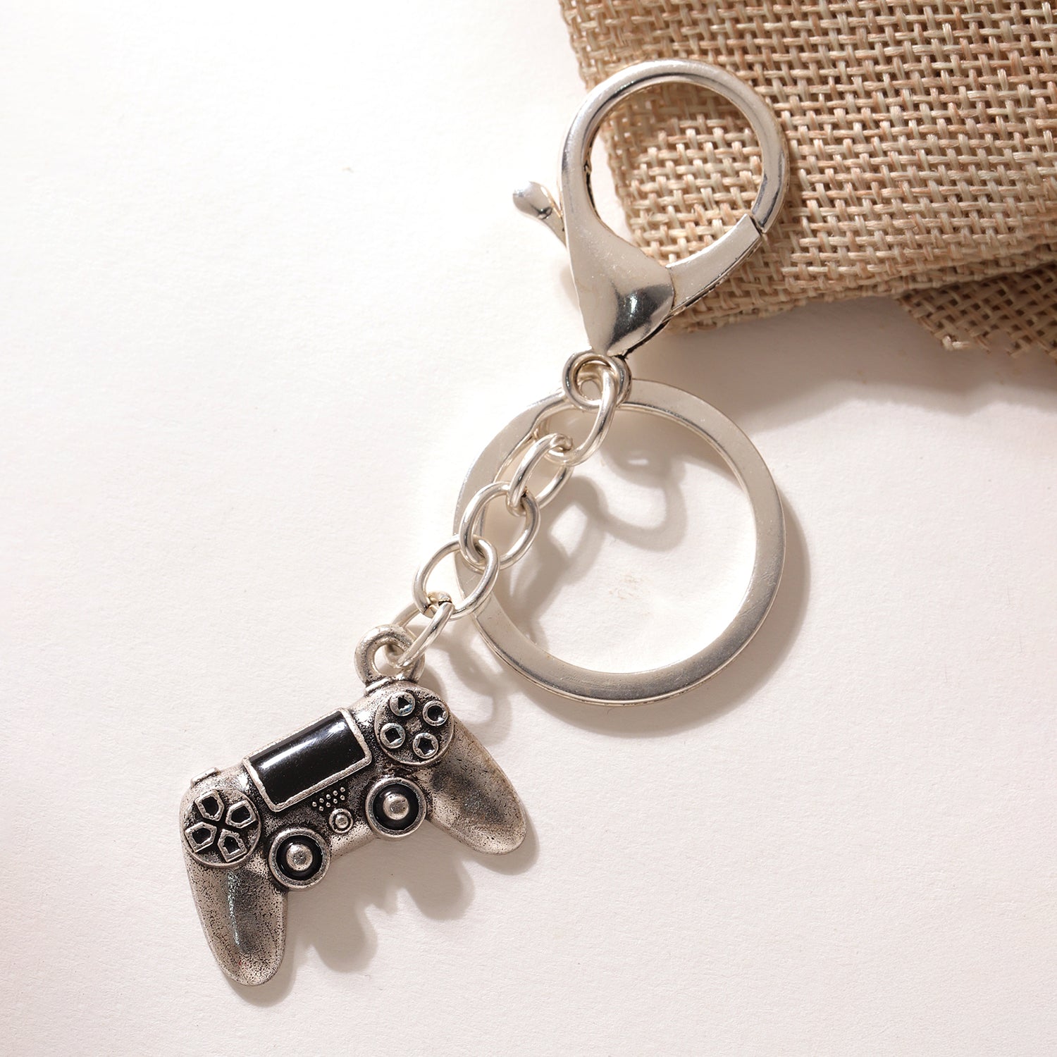 Playcore Gaming Controller Silver Oxidised Keychain Bag Charm Keychain For Men