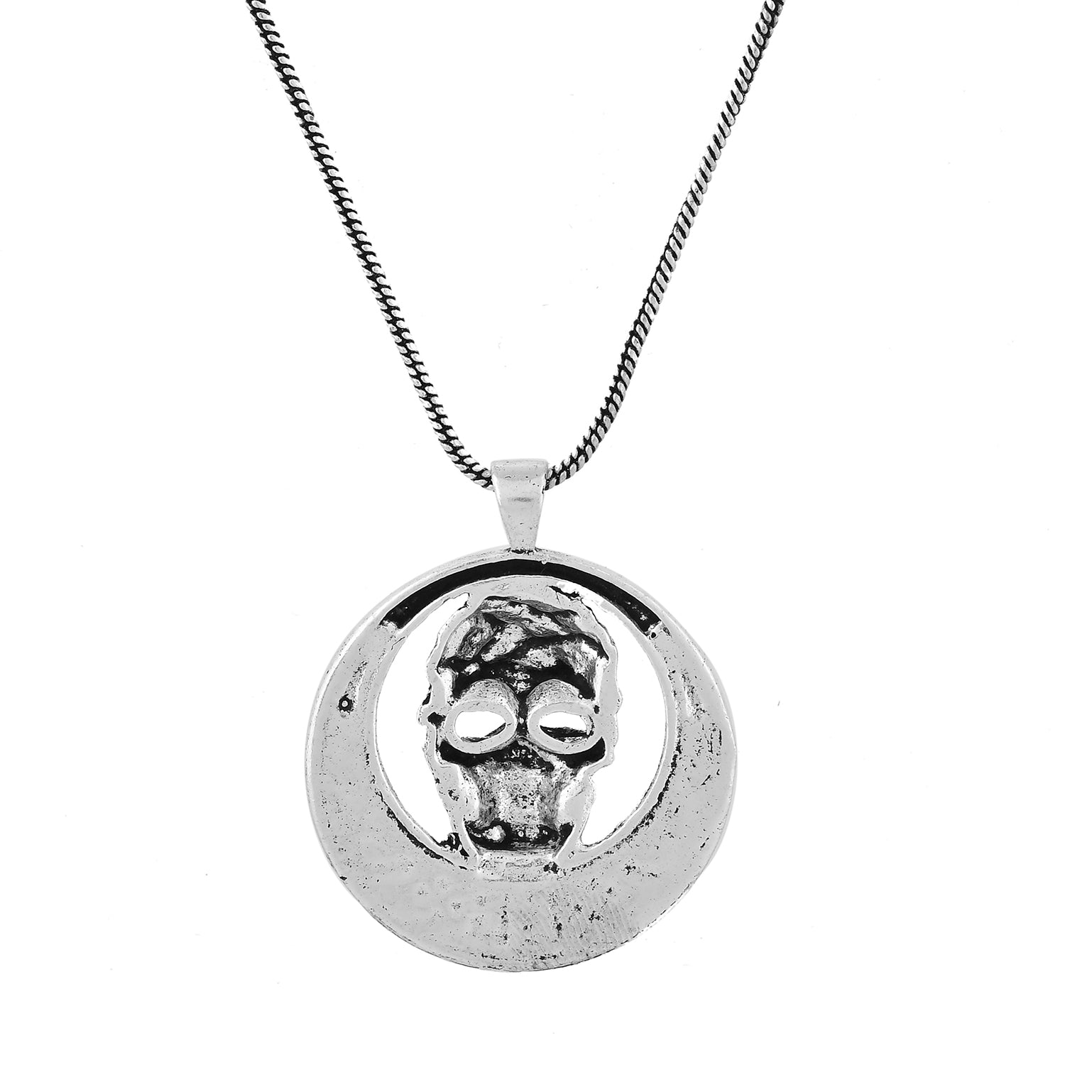 The Statement Mummy Skull Silver Oxidised Men’s Pendant from the Statement Collection redefines bold style with a perfect mix of power, mystery, and individuality. Expertly crafted from premium-quality brass and finished in antique silver oxidised plating, this fashion pendant features a striking mummy skull enclosed within a detailed circular frame. The intricate carvings around the edge give it a gothic yet modern appeal, while the oxidised silver tone enhances its rugged character. Designed for men who appreciate fearless and expressive accessories, this stylish pendant makes a commanding statement. It pairs perfectly with streetwear, casual looks, or biker-inspired outfits, adding a rebellious touch to your neck jewellery collection. Strong, meaningful, and durable, this chain pendant for men is also an ideal pendant for gifting, a symbol of strength and individuality that stands out effortlessly.