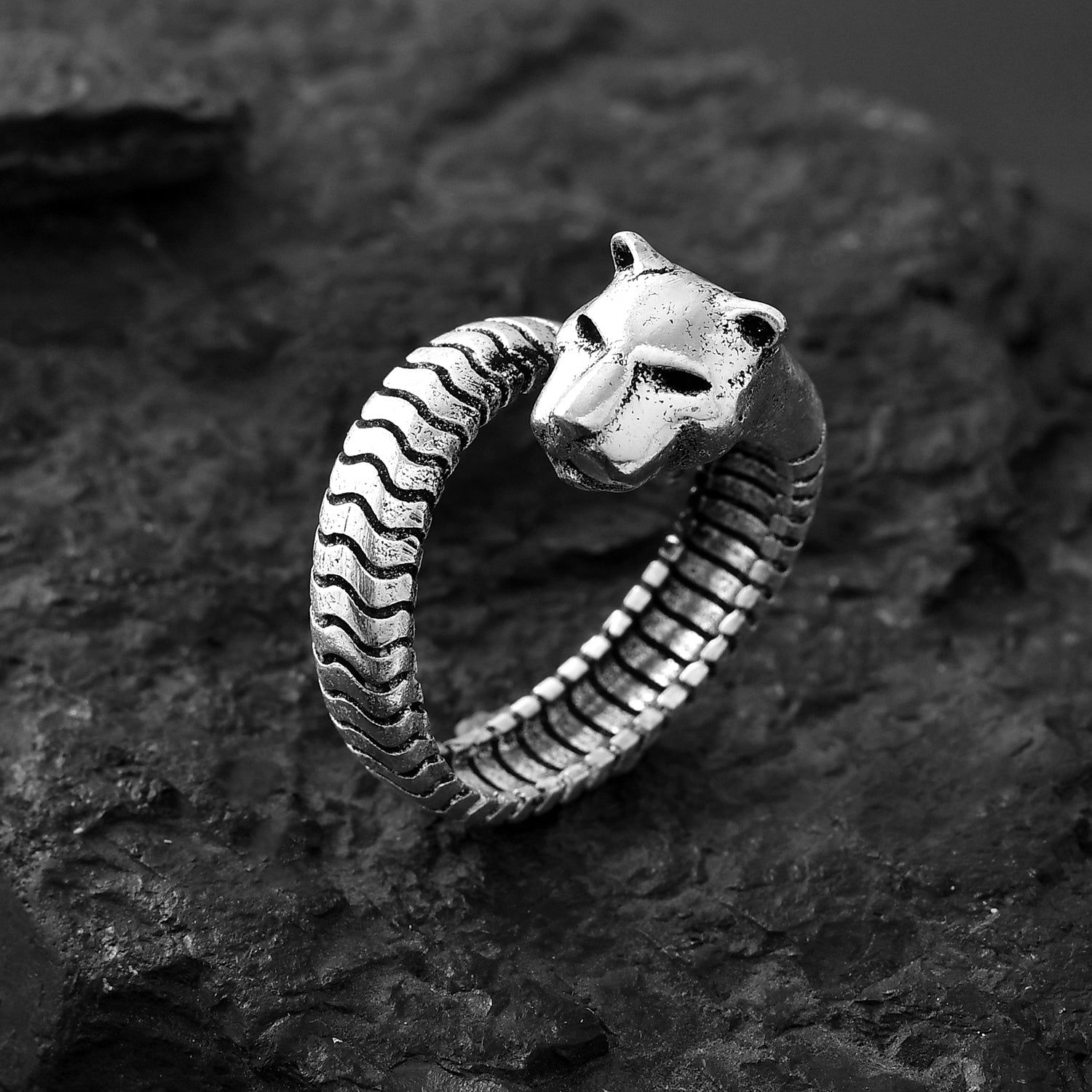 Statement Panther Silver Oxidised Men’s Ring