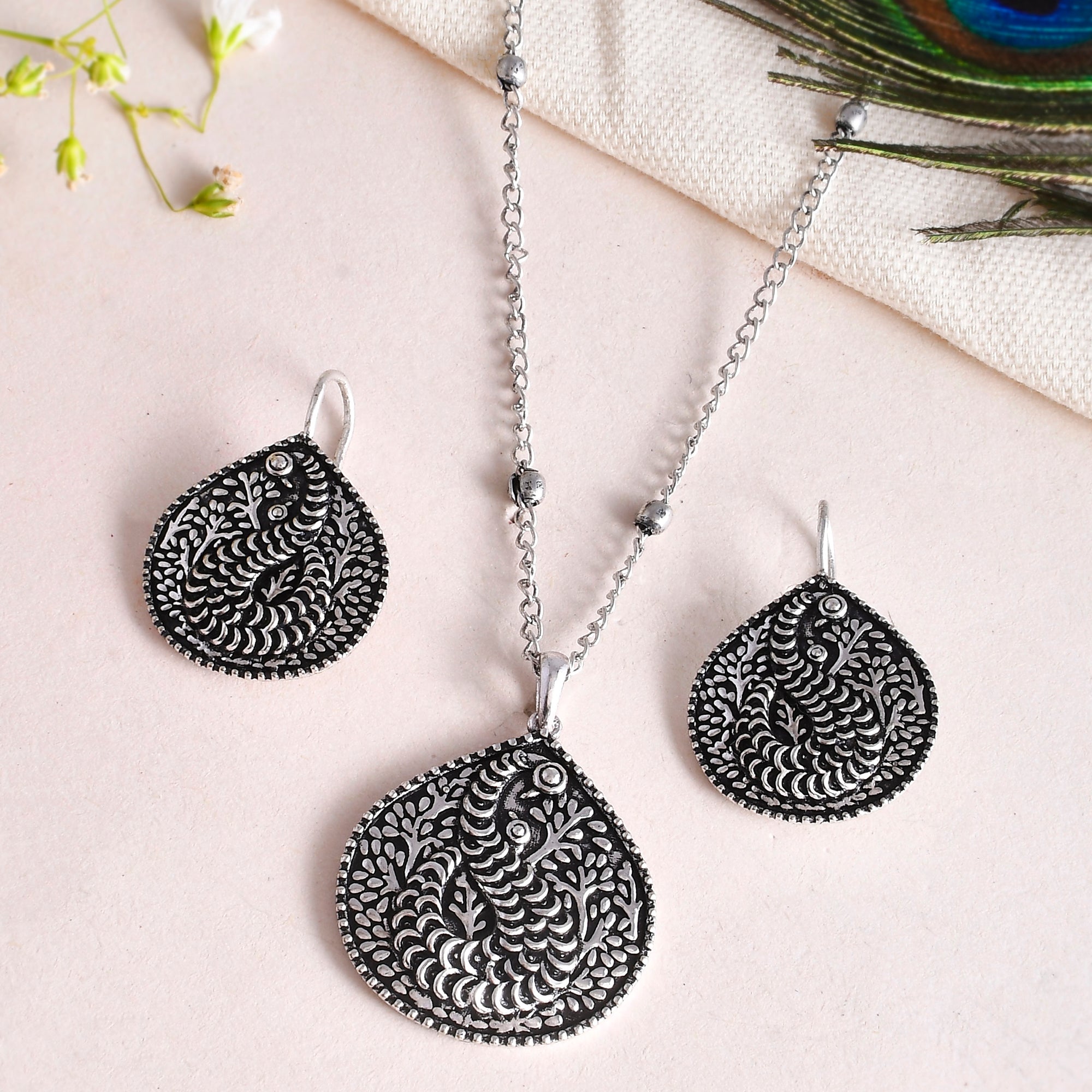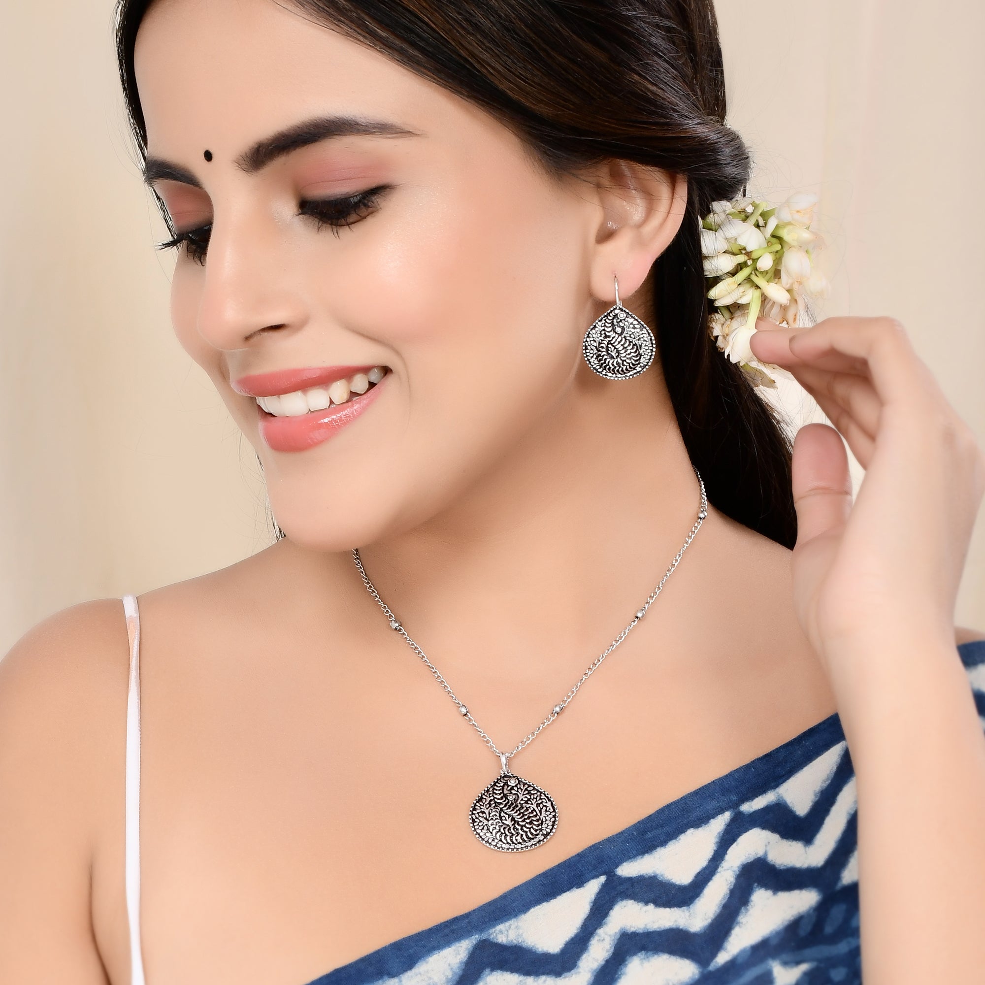This collection is inspired by Gond art, showcasing the beauty of nature through the elements of peacocks, flowers, and leaves beautifully woven into stunning oxidized jewelry pieces.Caring for your fashion jewelry: We, at Voylla, take care of every piece of...