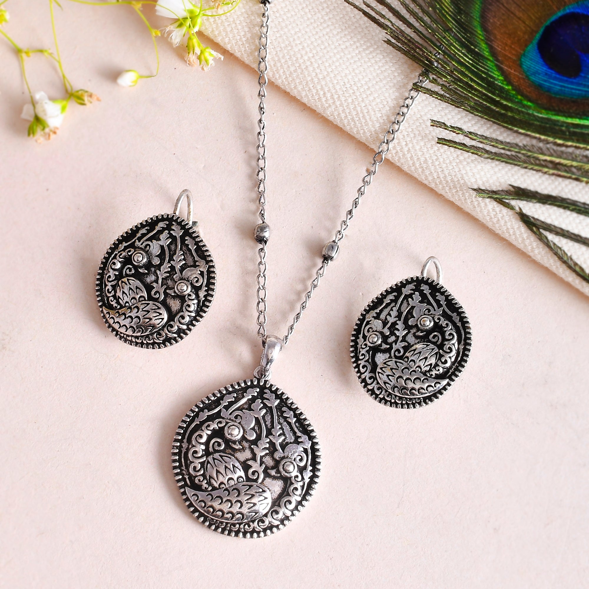 This collection is inspired by Gond art, showcasing the beauty of nature through the elements of peacocks, flowers, and leaves beautifully woven into stunning oxidized jewelry pieces.Caring for your fashion jewelry: We, at Voylla, take care of every piece of...