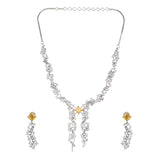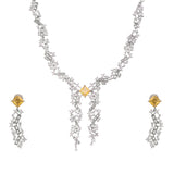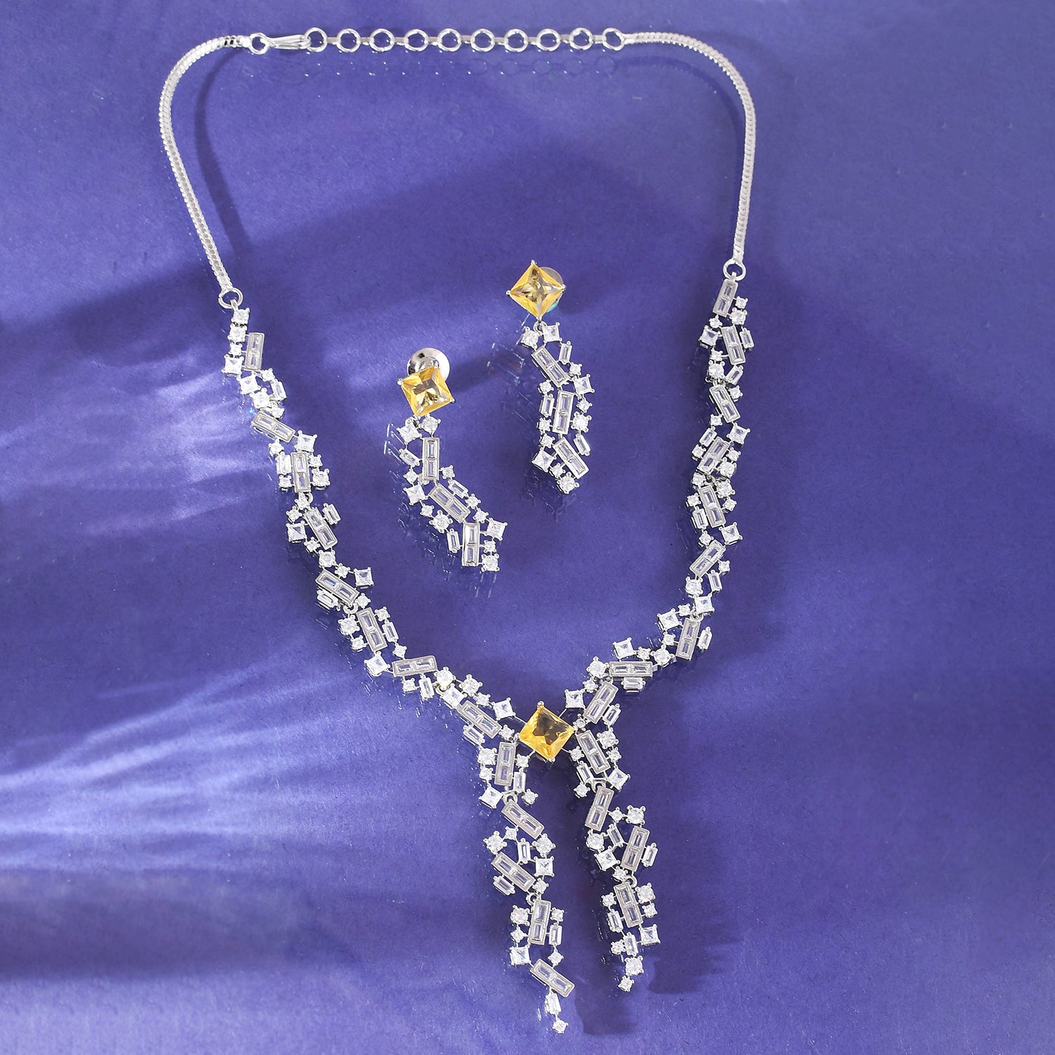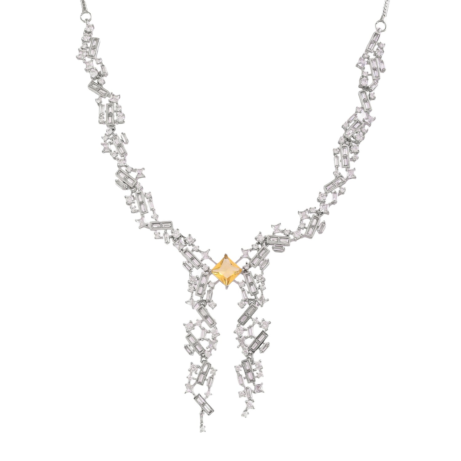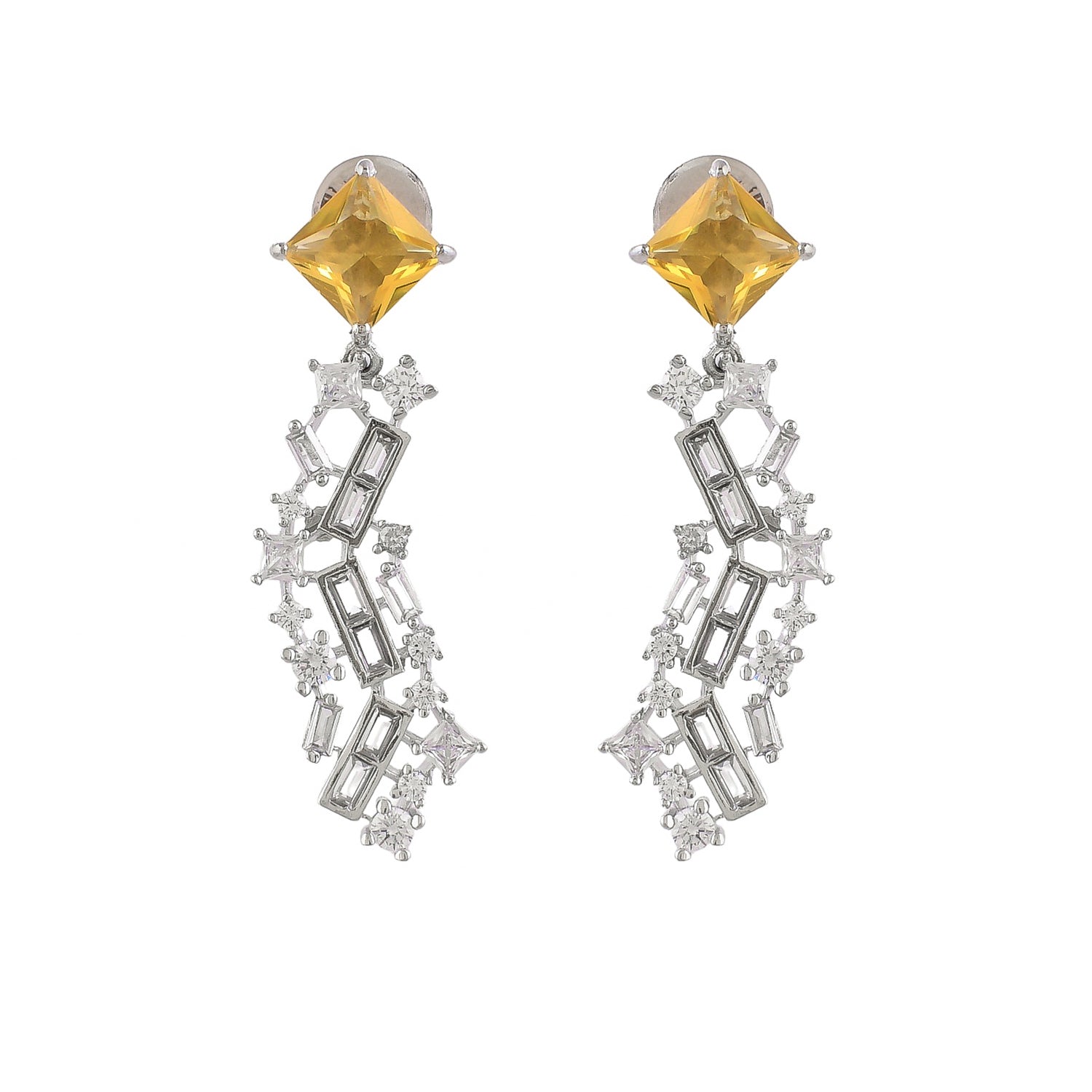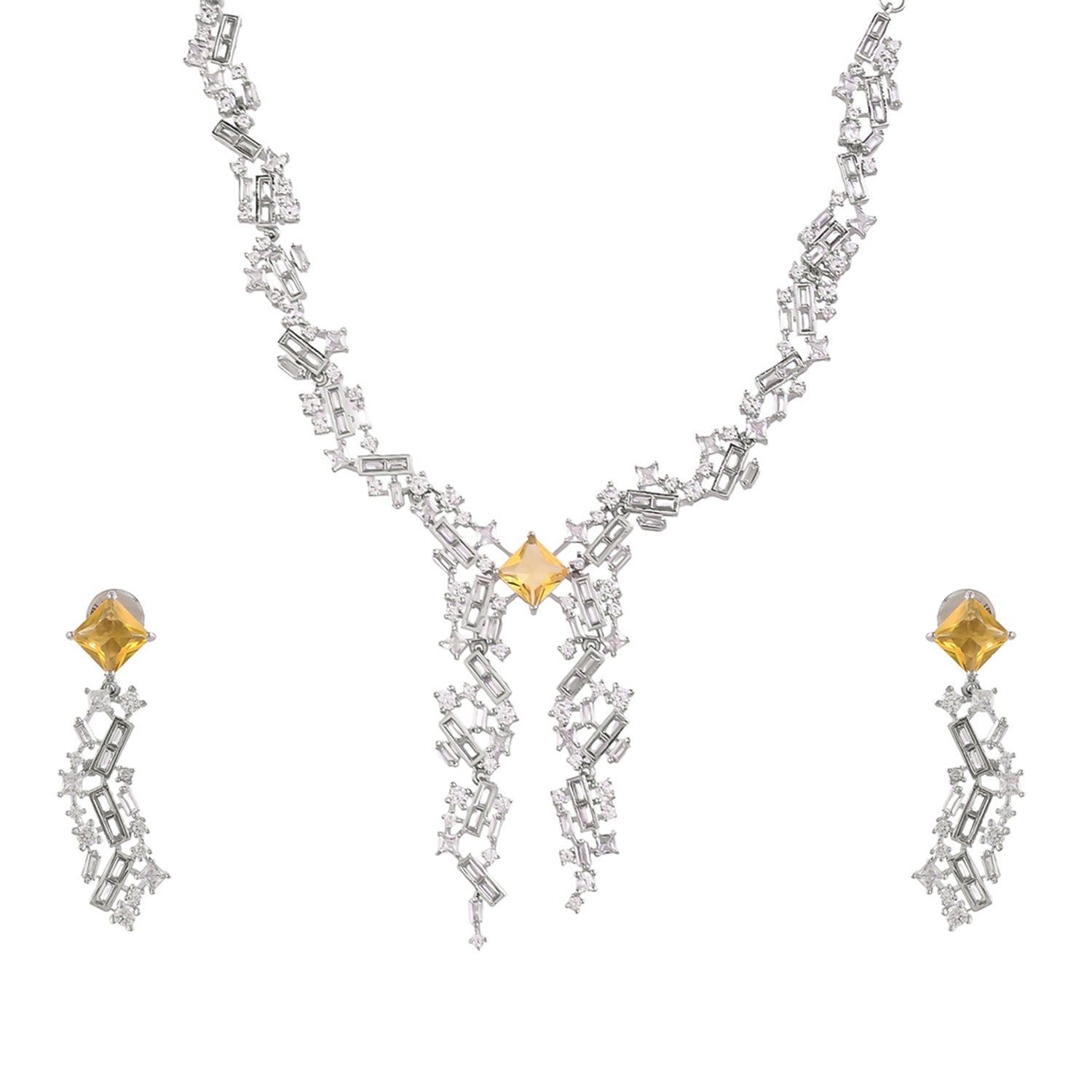 Inspired by Cubism, this white set features abstract cubic zirconia stones, with one yellow stone in the center, capturing the avant-garde spirit. Elevate your chic mood with this contemporary accessory, adding glamour to any ensemble.