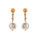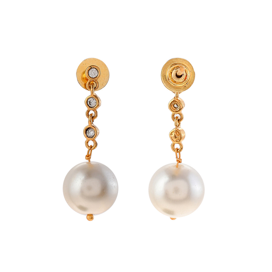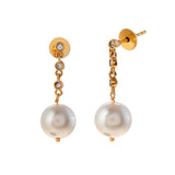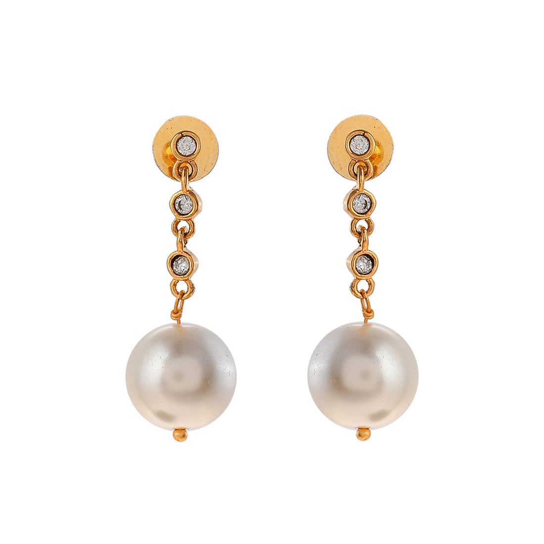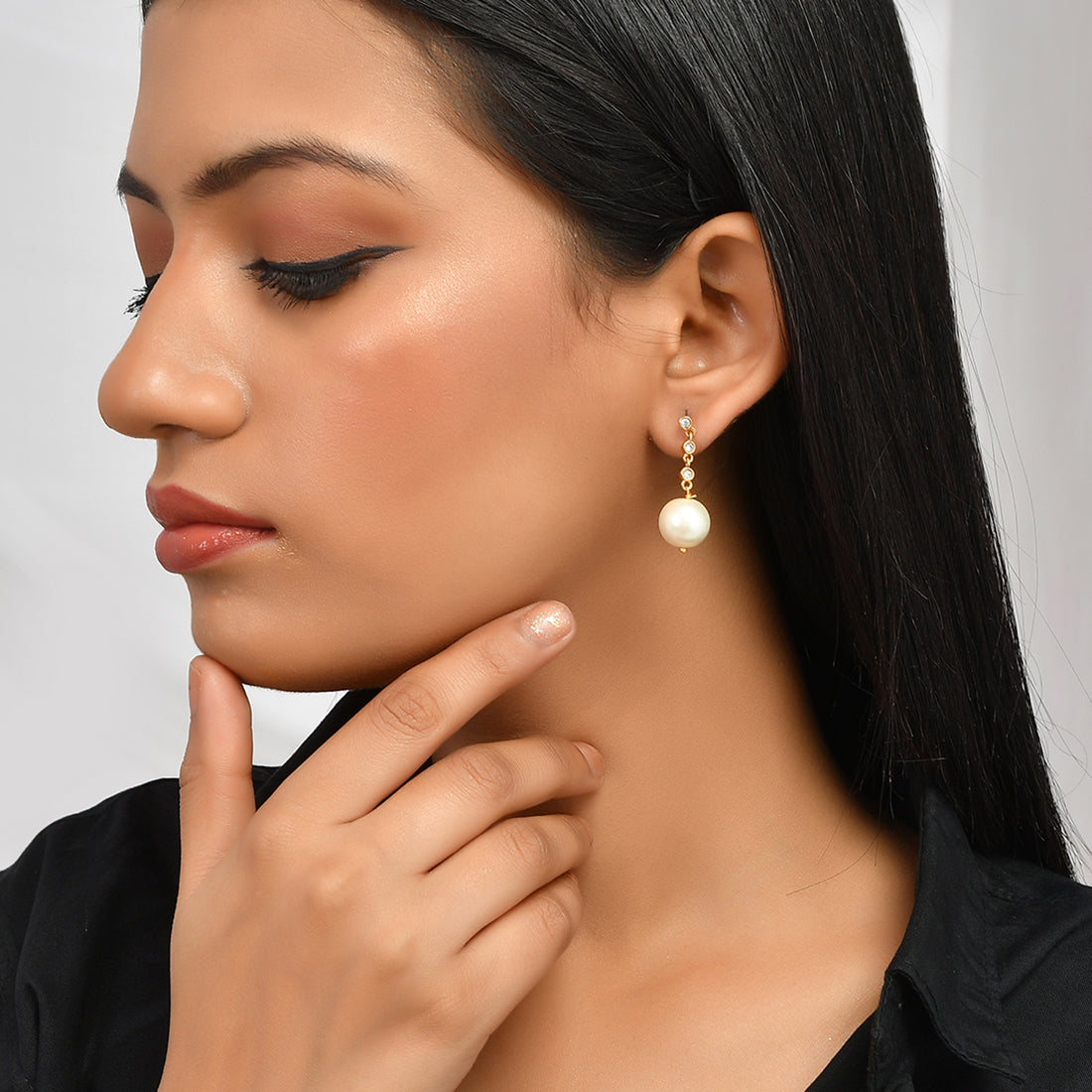 A unique combination of pearls and CZ stones creates a timeless and elegant design.A little sparkle to the classic danglers,gleaming and sparkling with white pearl drop.The yellow gold plating adds a luxurious touch to the earrings, making them a perfect accessory for any occasion.