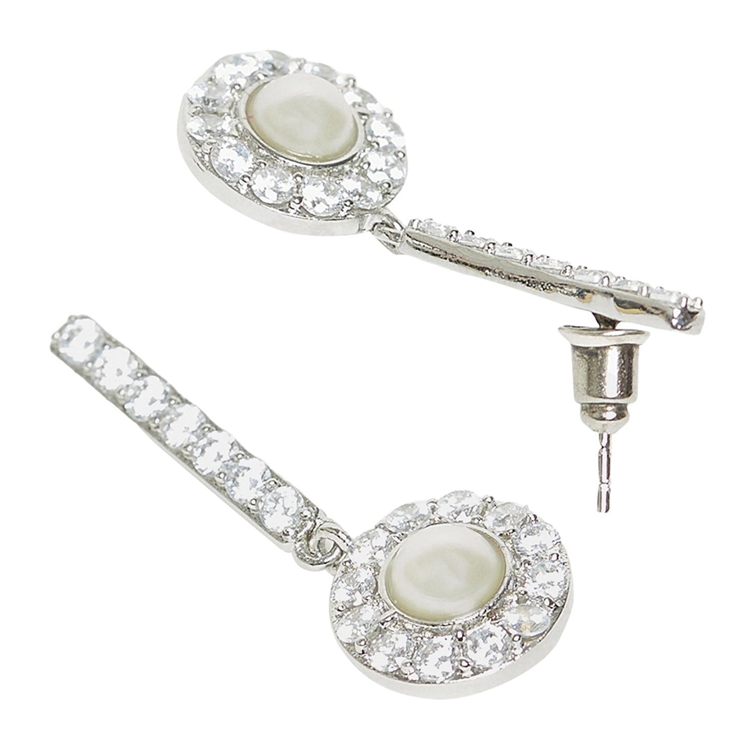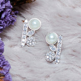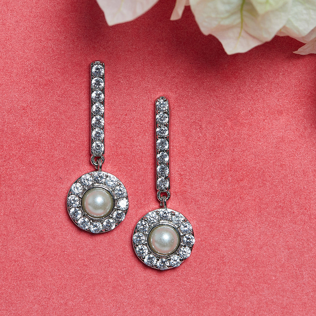 Adorn your ears with these breathtakingly beautiful earrings from the Pearly Whites collection, which promise to make you the centre of all attention everywhere you go. Perfectly sculpted to be absolutely flawless and in every way, and a result of expert craftsmanship, these beauties have been carved from the best quality brass and given a perfect finish and brilliant silver plating. Decorated with CZ gems, pearl droppings and intricate details, these drop earrings will compliment all your traditional Indian outfits.