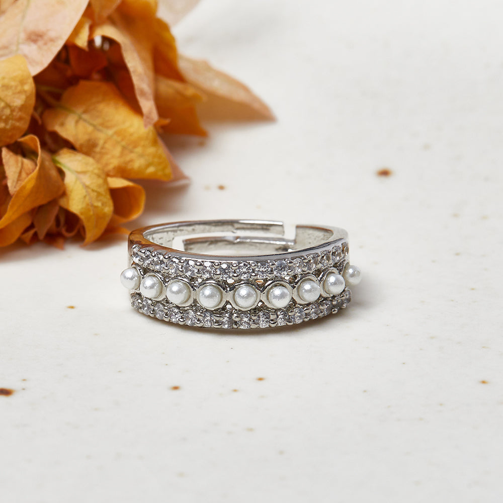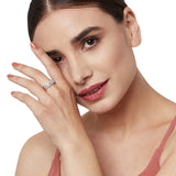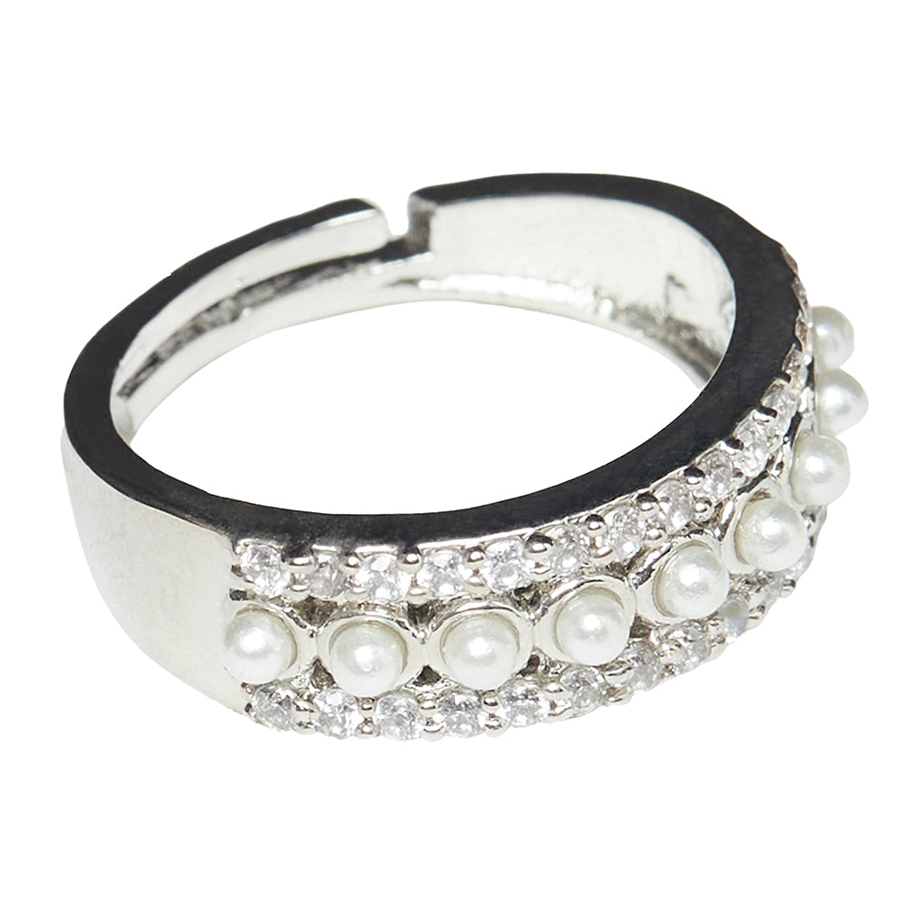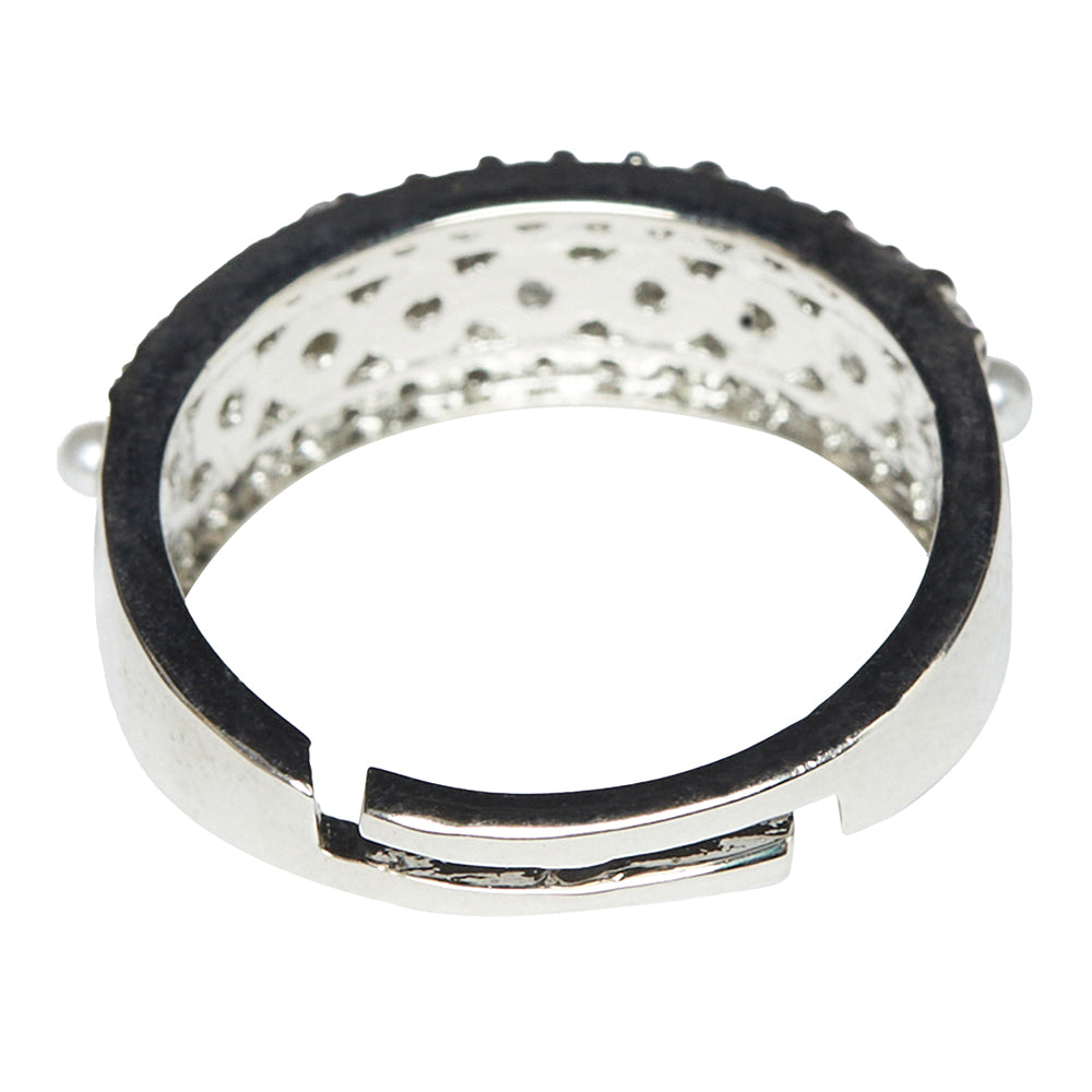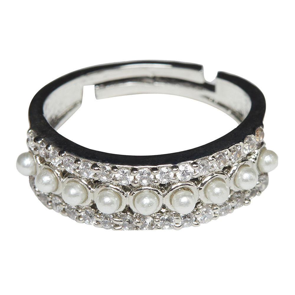 Brass ring for women, featuring a classic silver plating and Princess cut zirconia gemstones in a cushion setting. The comfortable and lightweight ring is versatile enough to be worn everyday as well as occasionally with formal outfits.