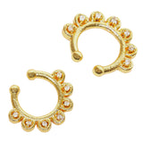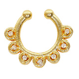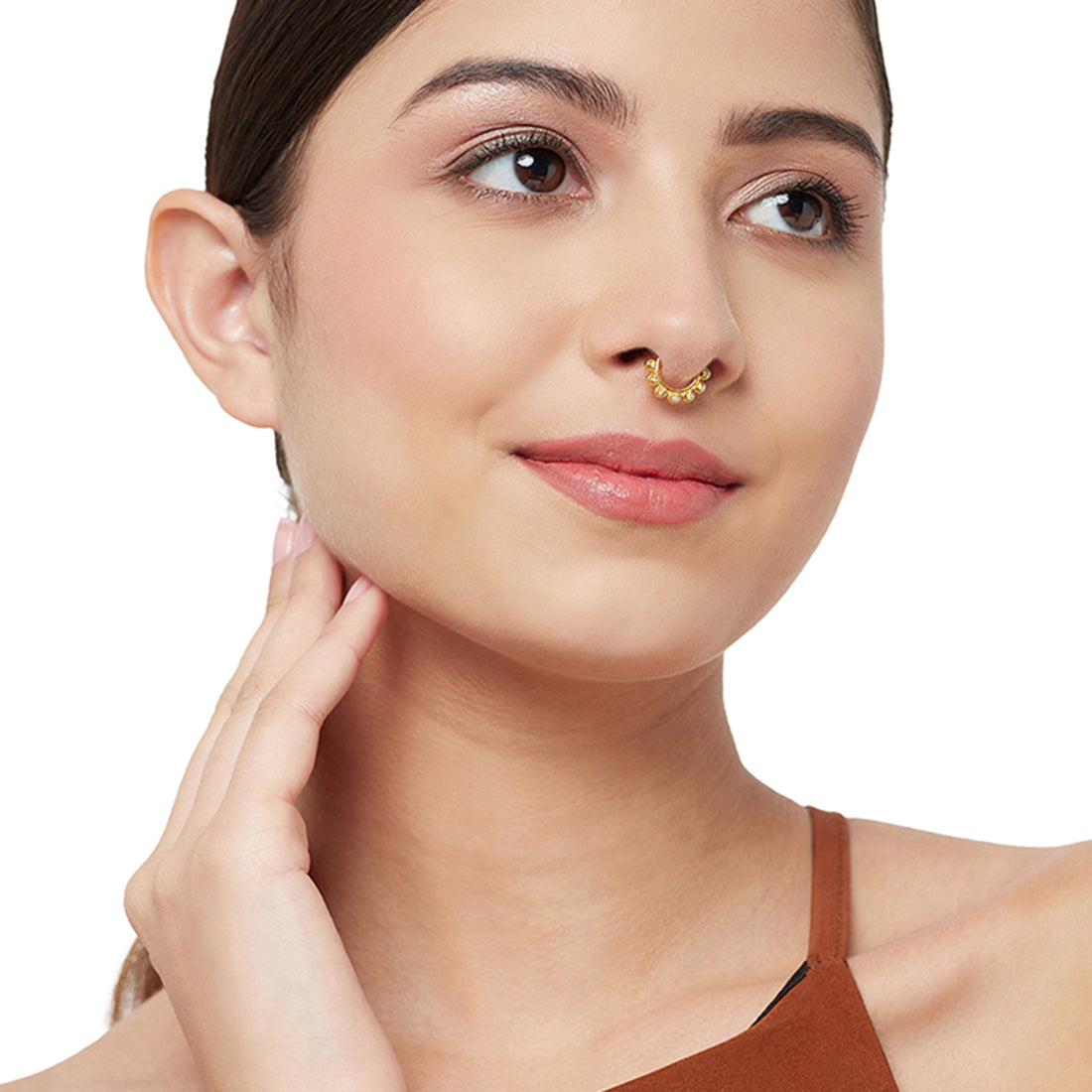 This ethnic dainty gold plated nath or nose ring would add tons of royalty to your traditional look. Team it up with your traditional Indian outfits to give yourself a perfect ethnic lady look at the next wedding or festive occasion.
