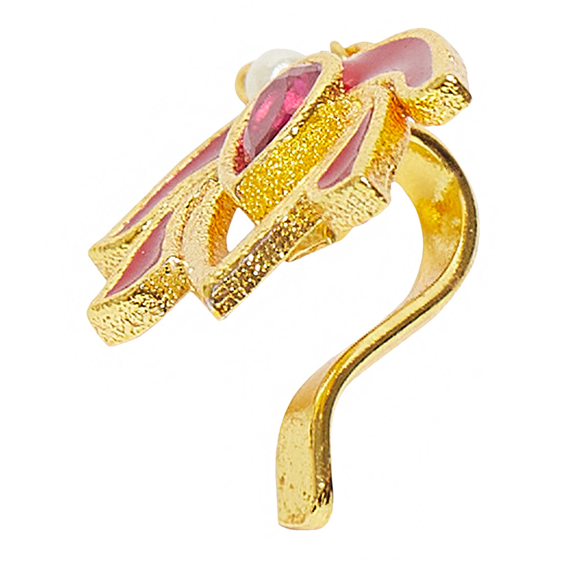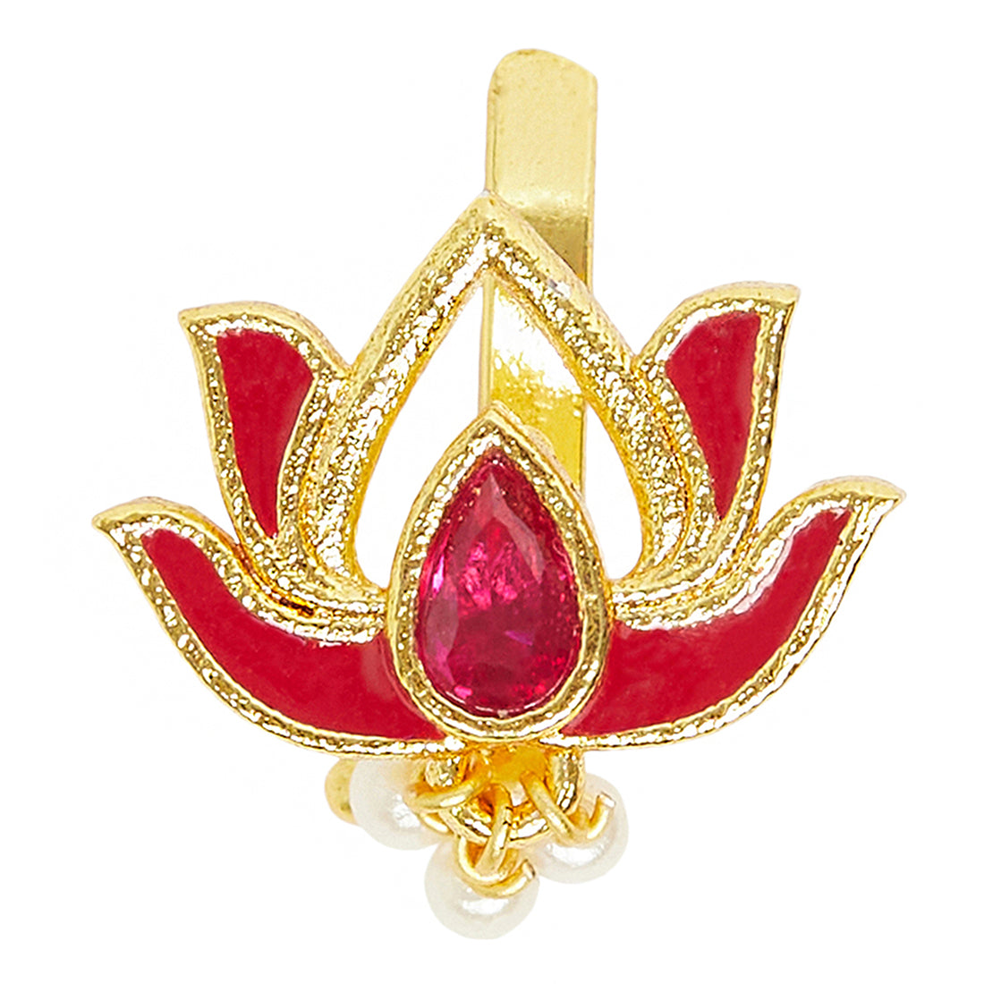 Lotus motif brass nose clip with gold plating. Wear with traditional attire. Intricate details, delightful colours and minimalistic style of this collection will accentuate the wearers modern and traditional look."