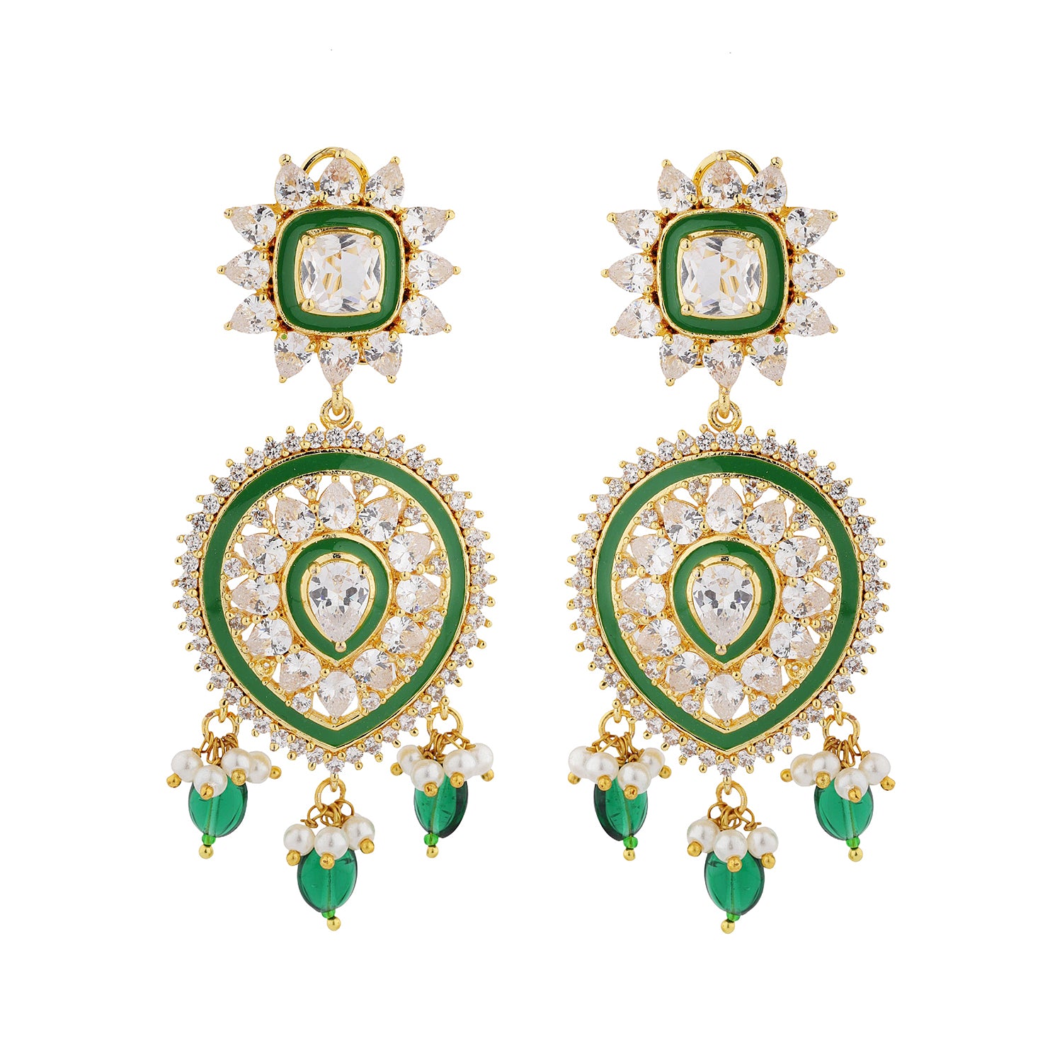 The Queens of Rajasthan Ameerin Collar Necklace Set is a striking expression of royal elegance inspired by the grandeur of Rajasthan’s palaces and ceremonial adornments. Designed as part of the iconic Queens of Rajasthan collection, this jewellery set celebrates heritage craftsmanship with a bold yet graceful silhouette, perfect for women who love statement jewellery rooted in tradition. Crafted in premium brass and finished with rich yellow gold plating, the Ameerin set features exquisite Kundan work framed with deep green enamel accents and classic pearl detailing. The collar-style necklace sits beautifully on the neckline, creating a regal presence, while the matching earrings add balance and sophistication to the overall look. Inspired by Rajasthan’s iconic kings and queens, this set is created for modern brides and women who want their jewellery to feel meaningful, heritage-driven yet effortless to wear. Whether styled as bridal jewellery, worn for festive celebrations, or chosen as a memorable gift for bride or bridesmaid, the Ameerin Collar Necklace Set brings timeless royalty to today’s special moments.