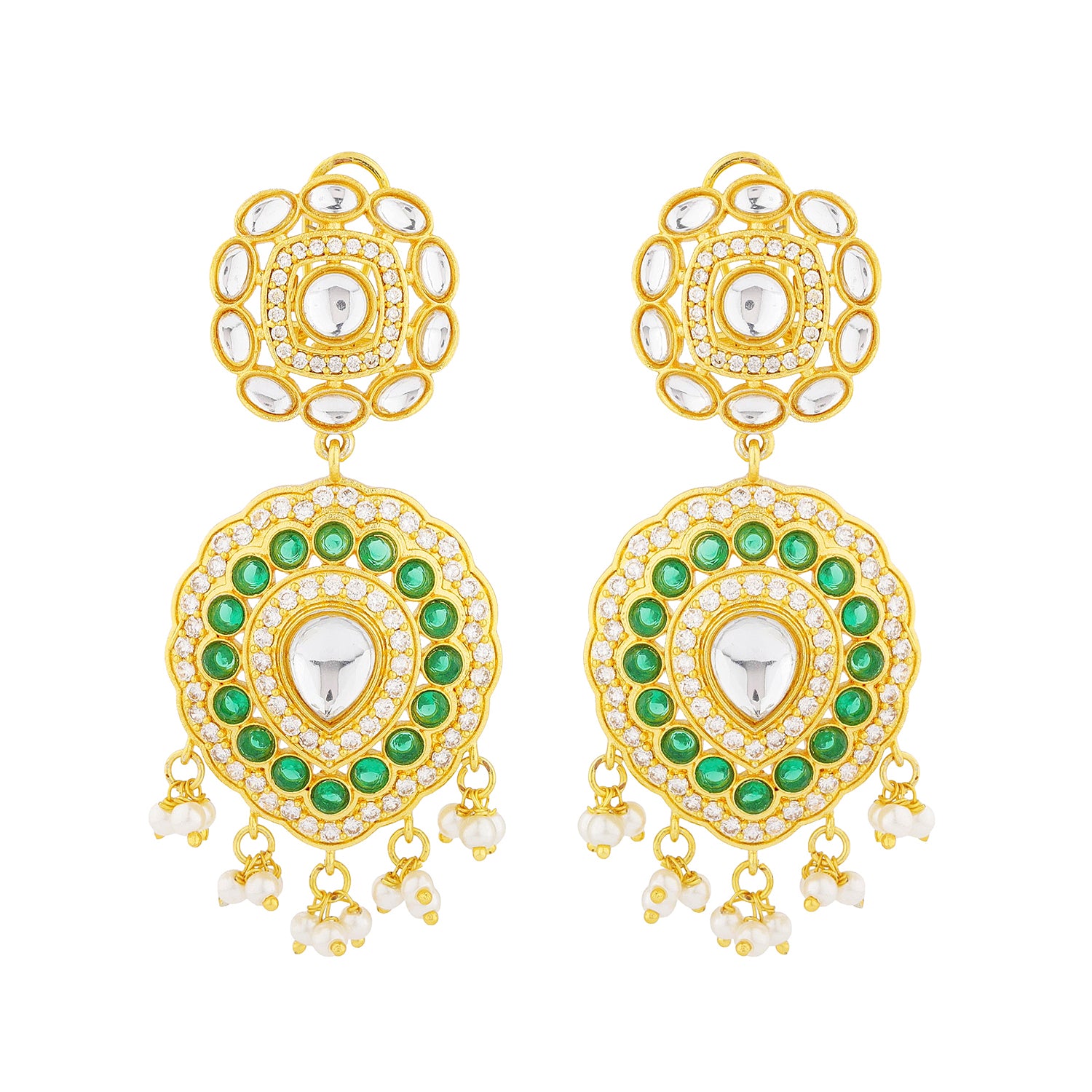 The Queens of Rajasthan Kundanika Choker Necklace Set is a radiant ode to royal elegance, inspired by the ornate jewellery worn by queens in Rajasthan’s grand palaces. Part of the timeless Queens of Rajasthan collection, this choker set blends heritage craftsmanship with modern refinement, perfect for women who seek jewellery that feels regal yet effortless. Crafted in premium brass and finished with luxurious yellow gold plating, the Kundanika set features exquisite Kundan work highlighted by rich green stone detailing and delicate pearl accents. The choker-style necklace sits gracefully on the neckline, offering a bold yet elegant statement, while the matching earrings complete the look with harmony and balance. Inspired by Rajasthan’s iconic kings and queens, this choker necklace set is designed for modern brides and women who want their jewellery to feel meaningful, deeply rooted in tradition yet comfortable for long celebrations. Whether styled as bridal jewellery, worn for festive occasions, or chosen as a thoughtful gift for bride or bridesmaid, the Kundanika Choker Necklace Set brings timeless royalty to every special moment.
