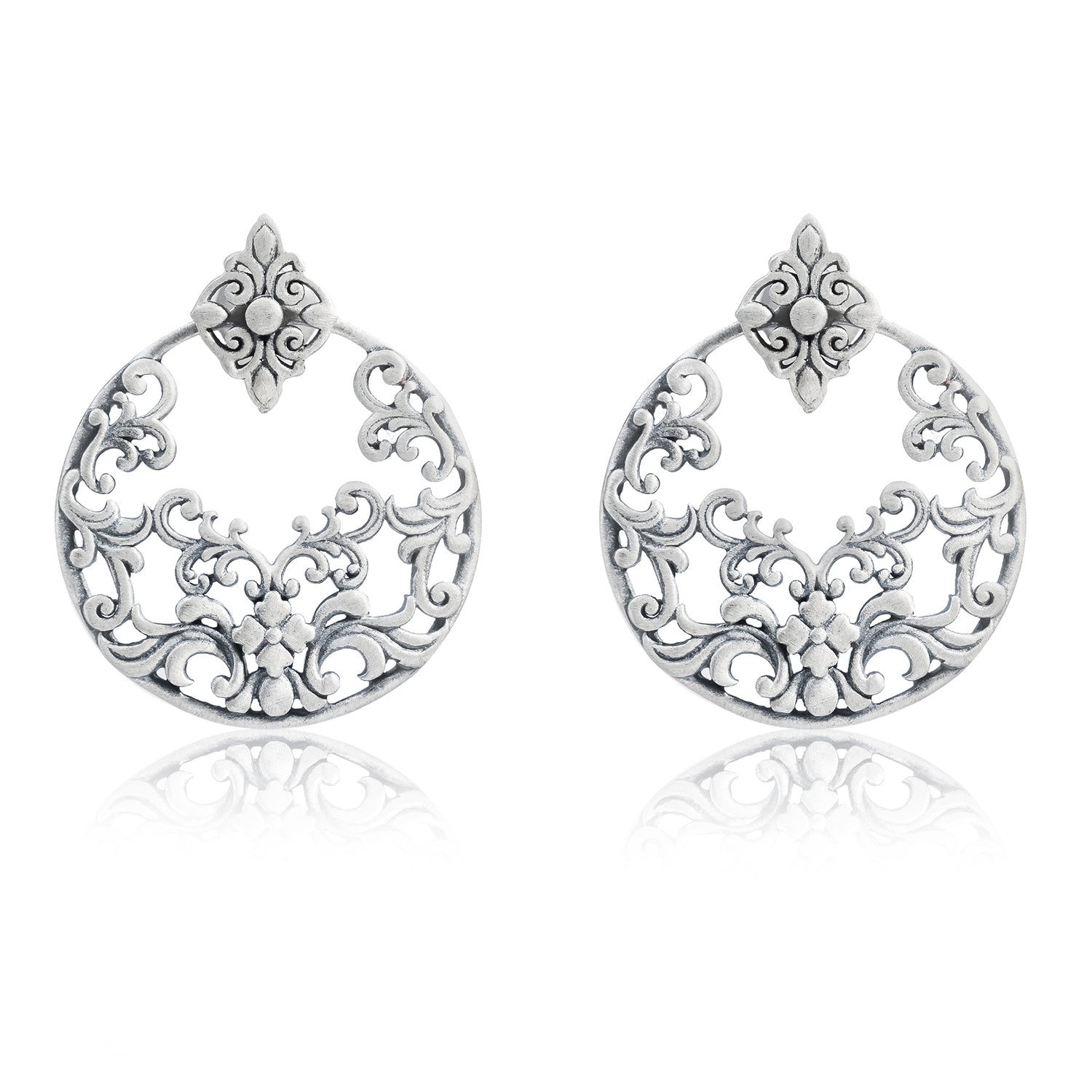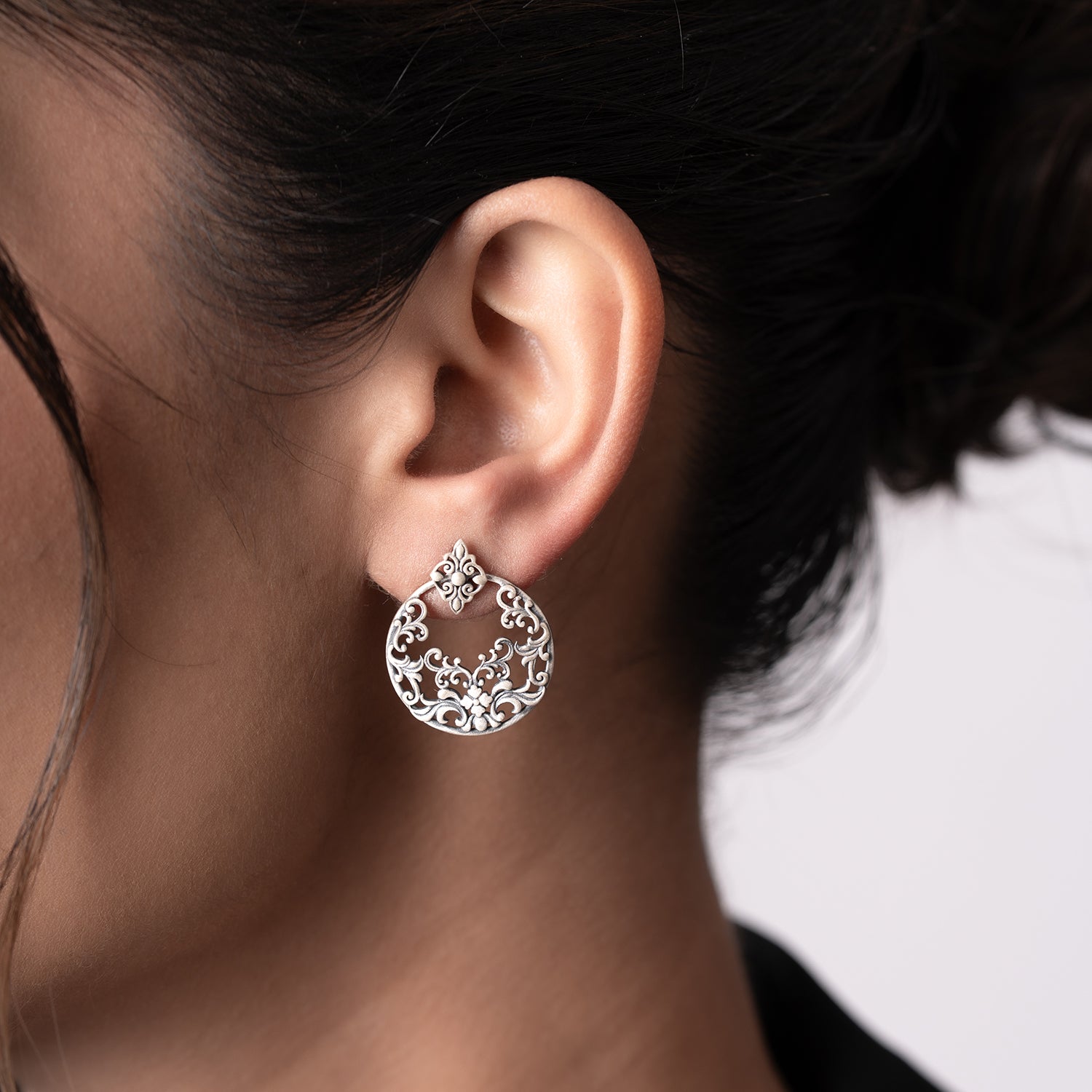 Inspired by floral carvings and the intricate textures found within ancient caves, the Cave Chronicles Bloom Etching Earrings are designed for women who love jewellery that feels artistic, expressive, and effortlessly modern. Crafted from premium 925 sterling silver and finished with silver e-coating plating and a refined matte finish, these silver earrings for women bring together detailed craftsmanship and contemporary elegance. The circular silhouette is delicately etched with floral and vine-like patterns, creating a layered, sculpted look that feels both light and visually rich. Designed to be worn as western earrings for women as well as with Indo-western outfits, these earrings for women add a subtle statement without feeling heavy or overpowering. Perfect for everyday styling, festive looks, or thoughtful gifting, these earrings for woman make a beautiful gift for self, a stylish gift for valentines, or a timeless Valentine’s Day gift that celebrates individuality and refined taste.
