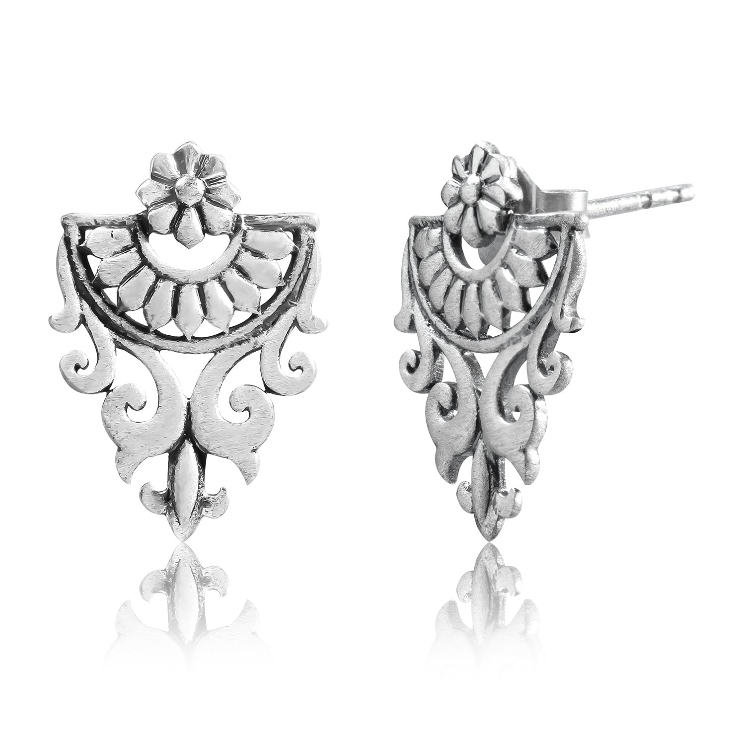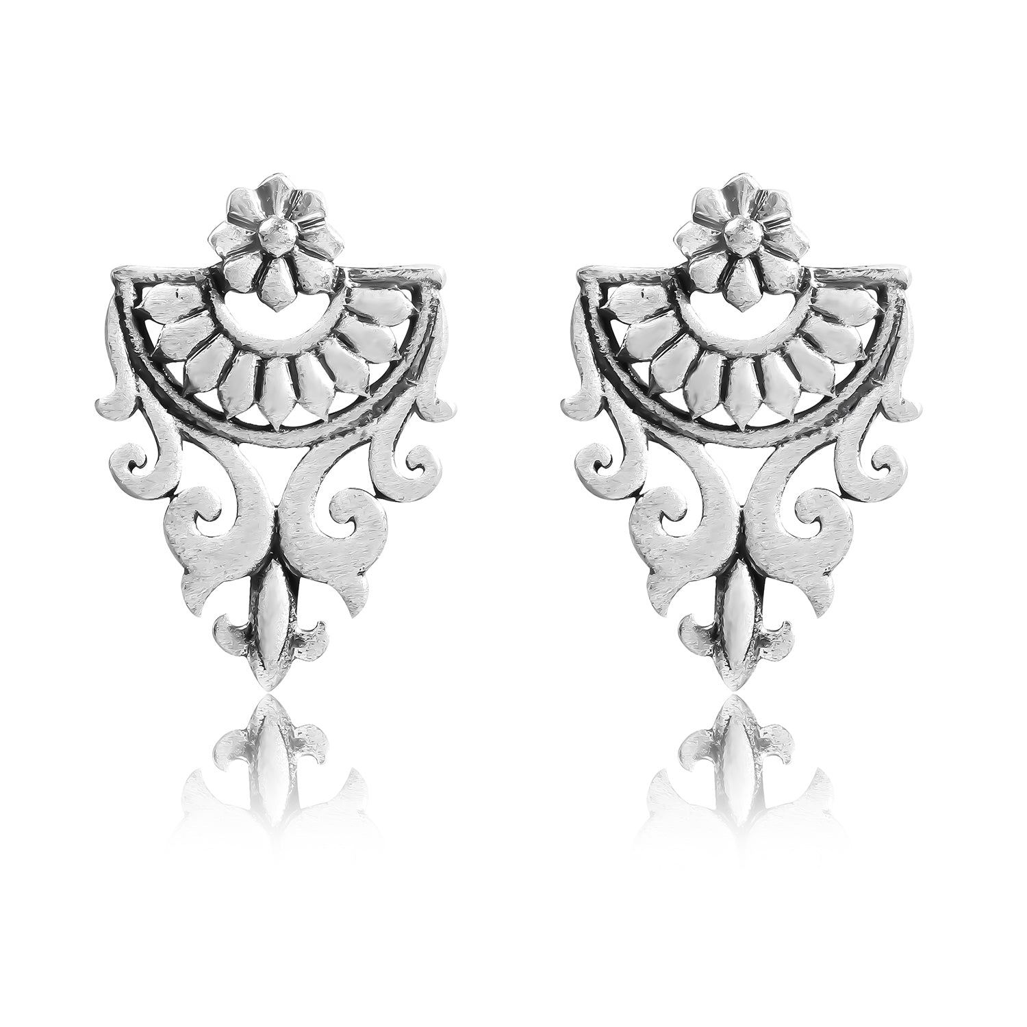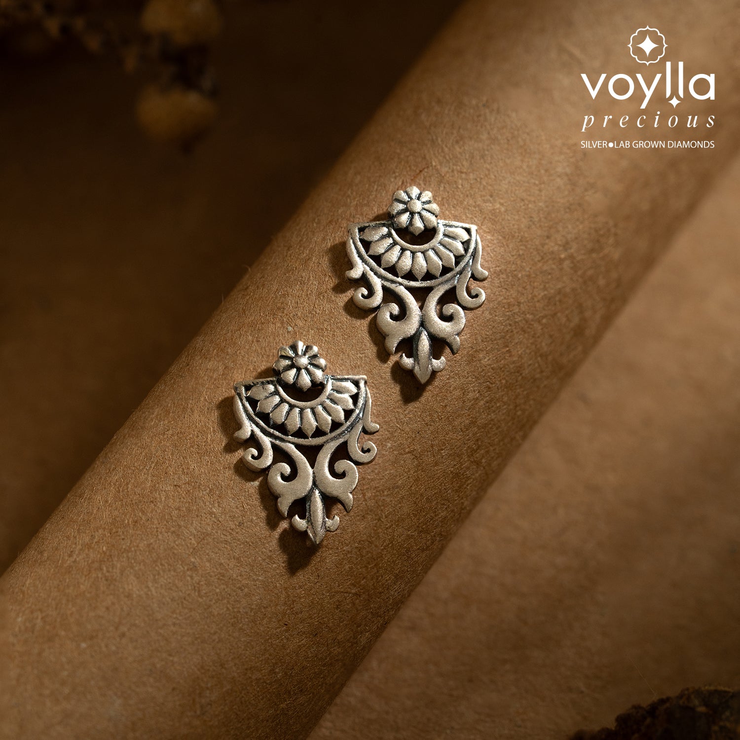 Add effortless elegance to your jewellery collection with the Cave Chronicles Floral Arch Stud Earrings, a refined pair of sterling silver earrings for women designed for modern, everyday styling. Crafted from premium 925 sterling silver with a silver e-coating plating and matte finish, these silver earrings combine artistic detailing with a contemporary silhouette, making them ideal studs for women who love chic, wearable jewellery. The floral top paired with the graceful arch design gives these earrings for women a unique blend of softness and structure. Inspired by natural forms and modern aesthetics, these western earrings for women are perfect for both daily wear and special occasions. Whether you’re looking for earrings for woman to style your workwear or festive outfits, or a meaningful gift for self or loved one, this pair is designed to stand out with understated beauty. These silver earrings for women also make a thoughtful Valentine’s Day gift, a romantic gift for valentines, or a stylish surprise for birthdays and anniversaries. With their modern-chic appeal and Indo-western charm, these earrings set for women are a timeless addition to any jewellery collection.
