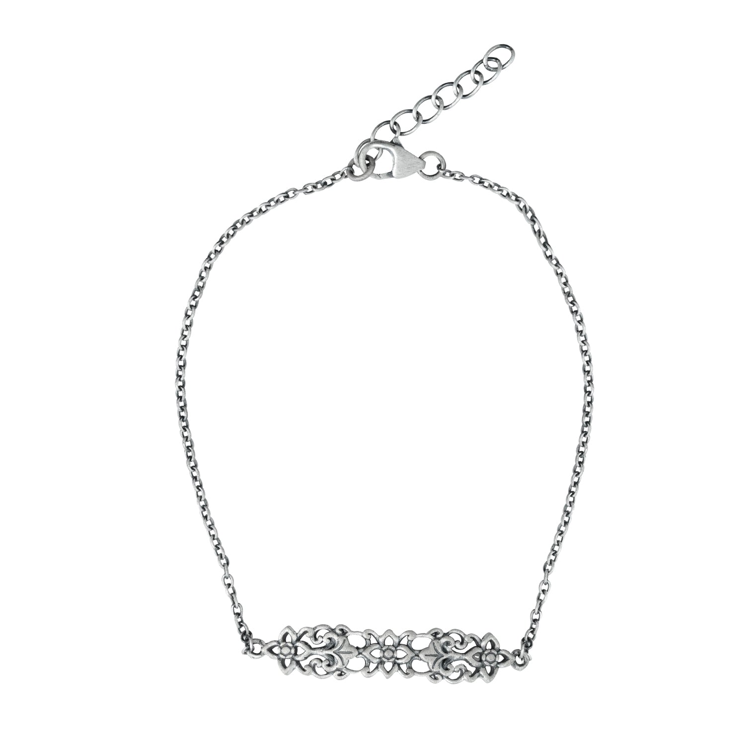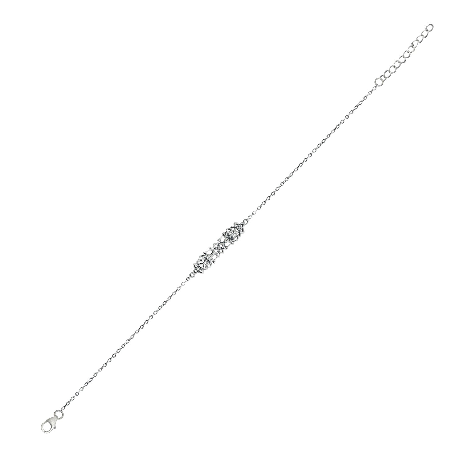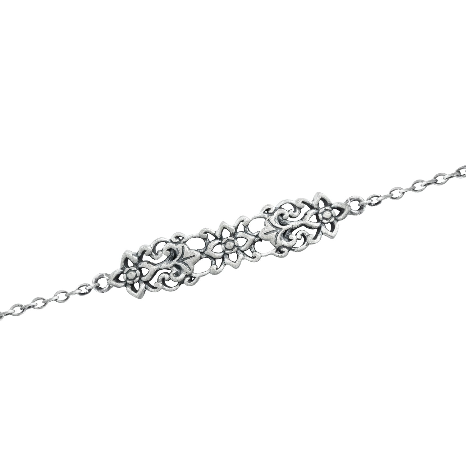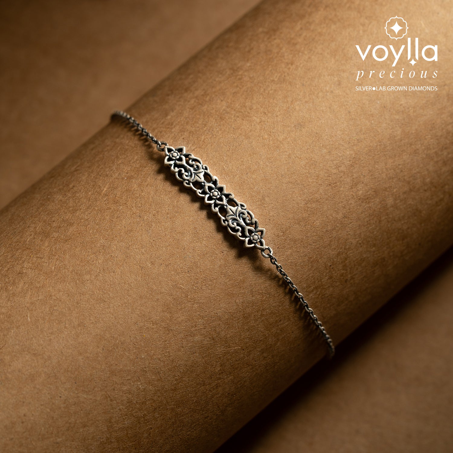 Inspired by delicate floral carvings found deep within ancient caves, the Cave Chronicles Floral Embellish Bracelet is a refined silver bracelet for women that blends organic beauty with modern elegance. Crafted from premium 925 sterling silver and finished with silver e-coating plating and a soft matte finish, this bracelet for women features intricately sculpted floral links that flow gracefully along the wrist. The fine chain and detailed motifs create a lightweight, fluid design that feels effortless yet luxurious. Designed for daily-wear western styling as well as modern Indo-western looks, this silver bracelet adds a subtle statement to everything from casual outfits to festive ensembles. Whether worn solo for a minimal look or layered with other jewellery, it brings timeless charm and artistic depth to your style. Perfect as a gift for self or a thoughtful gift for valentines or Valentine’s Day, this bracelet for woman celebrates femininity, craftsmanship, and everyday elegance.