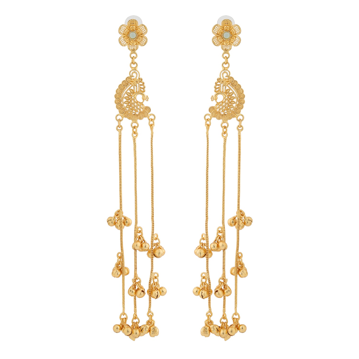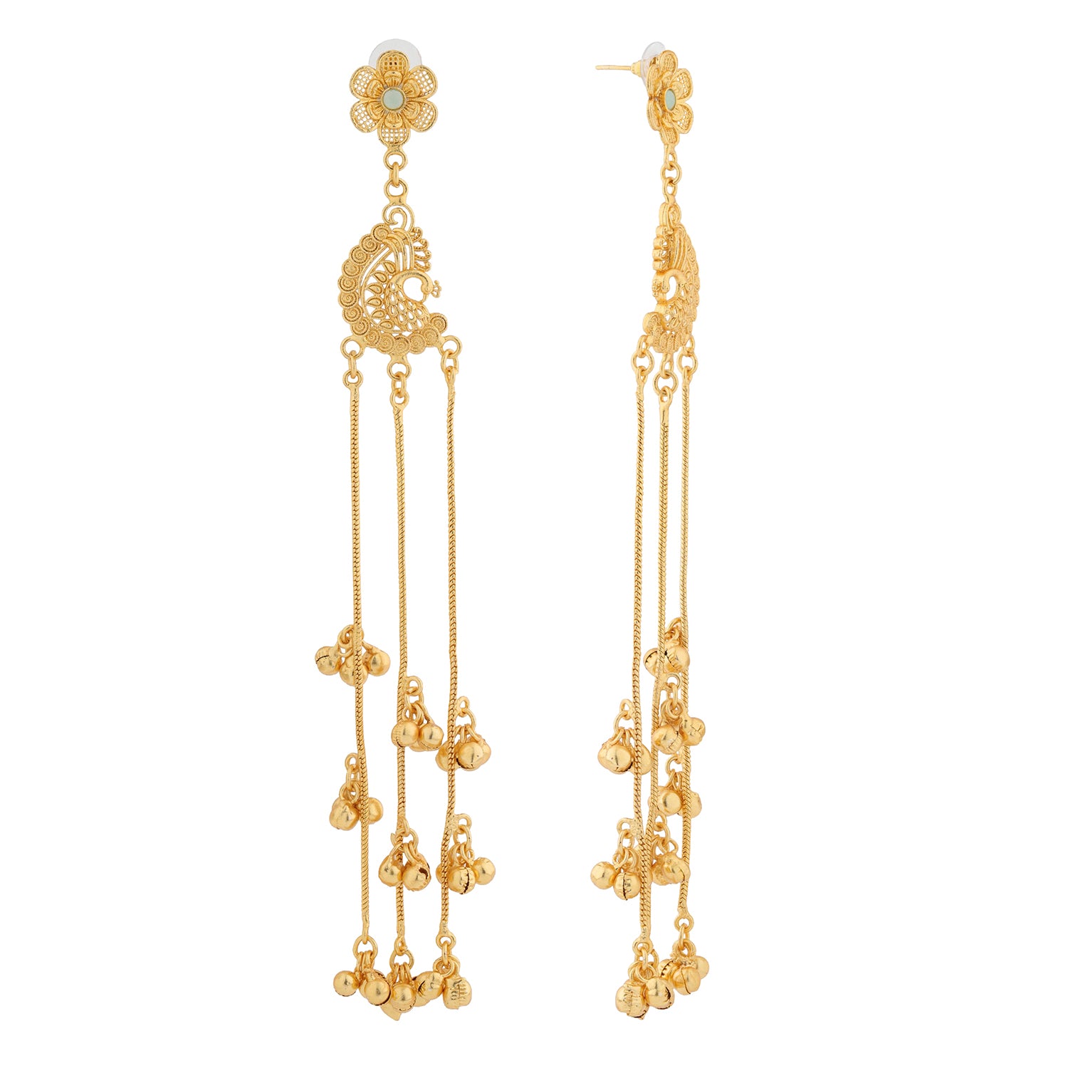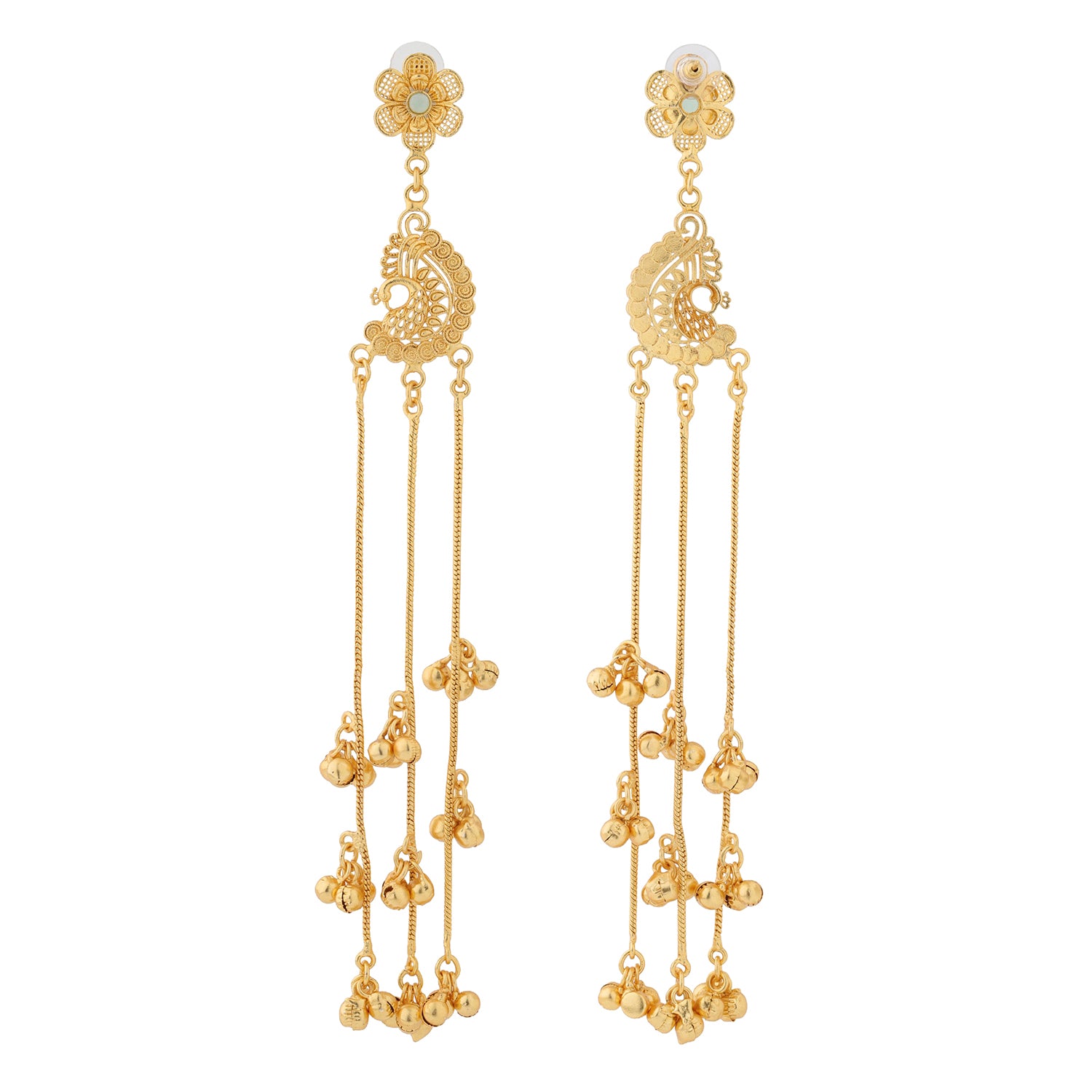 Kashmiri Royal Mehr Long Gold Ghungroo Earrings