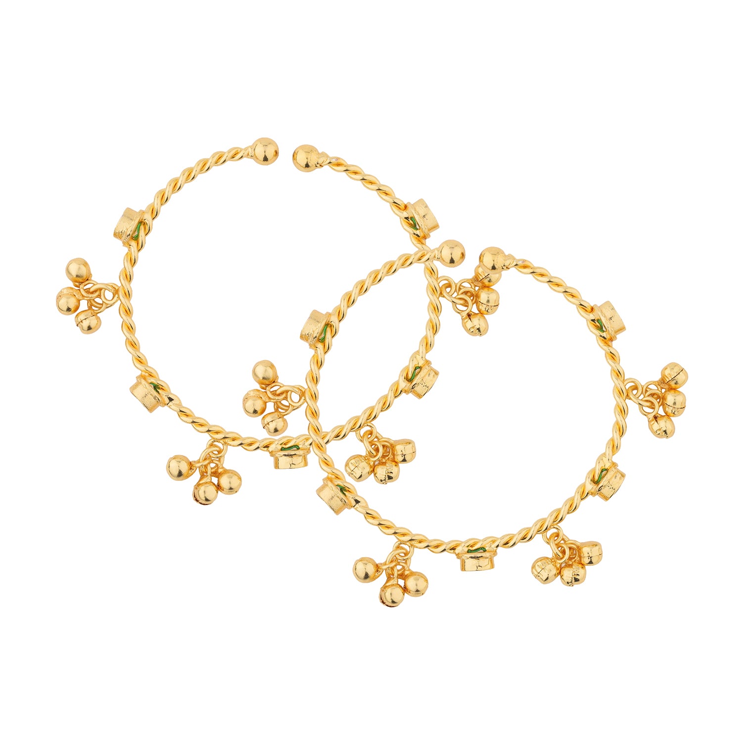 Add timeless Kashmiri elegance to your jewelry collection with our Kashmiri Zoya Ghungroo Bangles, designed to reflect royal charm and traditional craftsmanship. This beautiful bangle set features a twisted gold kada base decorated with shimmering green stones and classic ghungroo bells that create a soft, musical jingle with every movement. Crafted from premium-quality brass and finished with luxurious yellow gold plating, these bangles offer a rich antique-gold glow while remaining lightweight and comfortable for everyday or festive wear. The elegant design blends traditional Kashmiri style with a modern touch, making them perfect for both ethnic and Indo-western outfits. Whether you’re dressing up for a wedding, festival, or a romantic evening, these Kashmiri ghungroo bangles add grace and beauty to your look. They also make a thoughtful gift for your wife, girlfriend, or loved one for Valentine’s Day, anniversaries, birthdays, and special occasions.