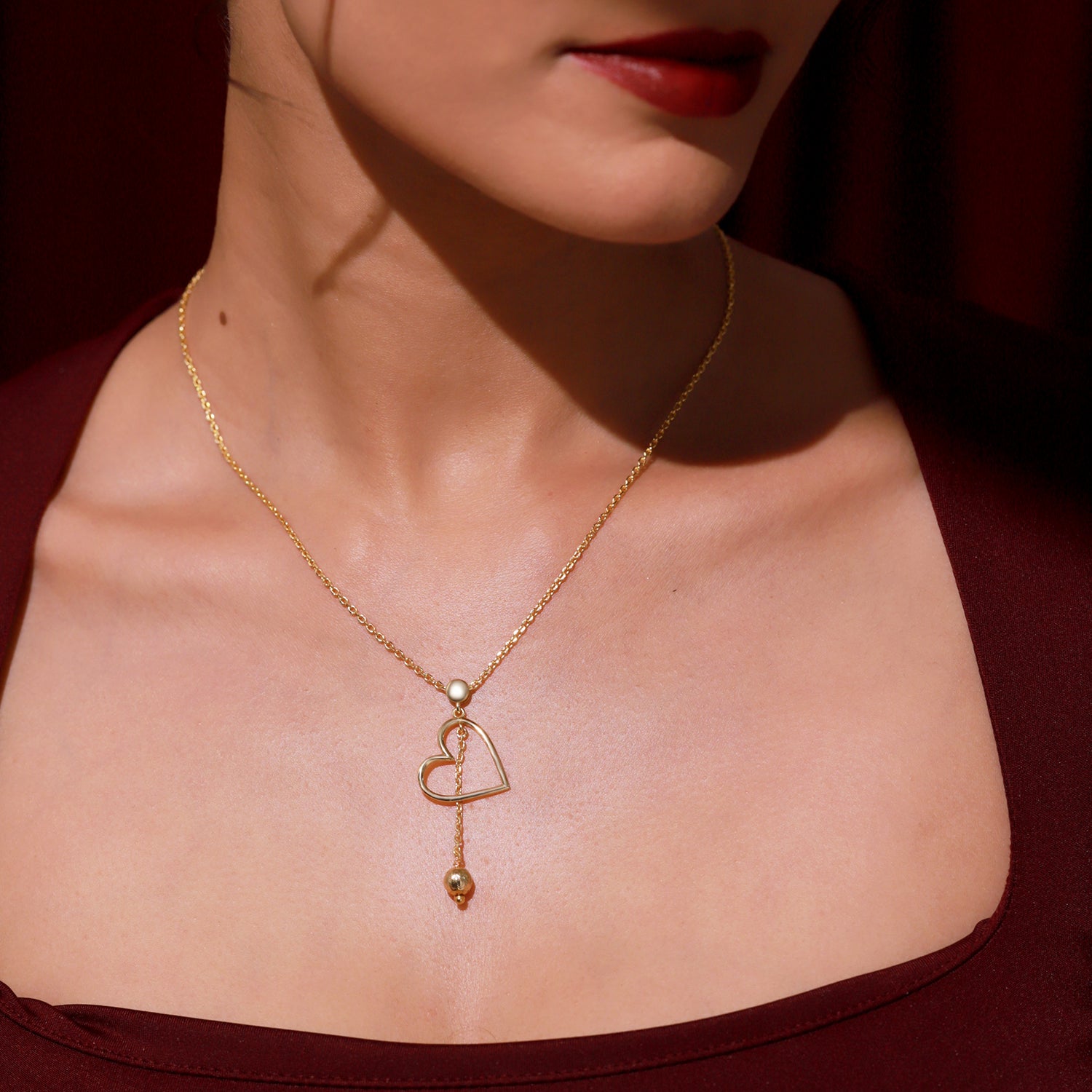Introducing the Golden Drop of Love Pendant, a refined expression of romance and modern femininity crafted as part of our elegant Valentine’s Day Collection. Featuring a beautifully open heart silhouette gracefully suspended from a delicate gold-plated chain, and complete with a gently hanging drop bead, this pendant creates a soft kinetic elegance that dances with subtle charm. Every element of this design exudes gentle sophistication: the heart is left open symbolizing vulnerability, affection, and emotional openness while the drop bead beneath adds a hint of playful movement, making the pendant feel alive and expressive. Crafted in genuine 925 sterling silver and finished with premium yellow gold plating, this pendant maintains its luxurious glow, durability, and hypoallergenic comfort. Whether worn to elevate a soft everyday look or used as a romantic accent for special occasions, this sterling silver pendant is a thoughtful and heart-centered accessory, perfect as a loving gift for women, sentimental gift for lover, or meaningful gift for self celebrating inner tenderness and self love.