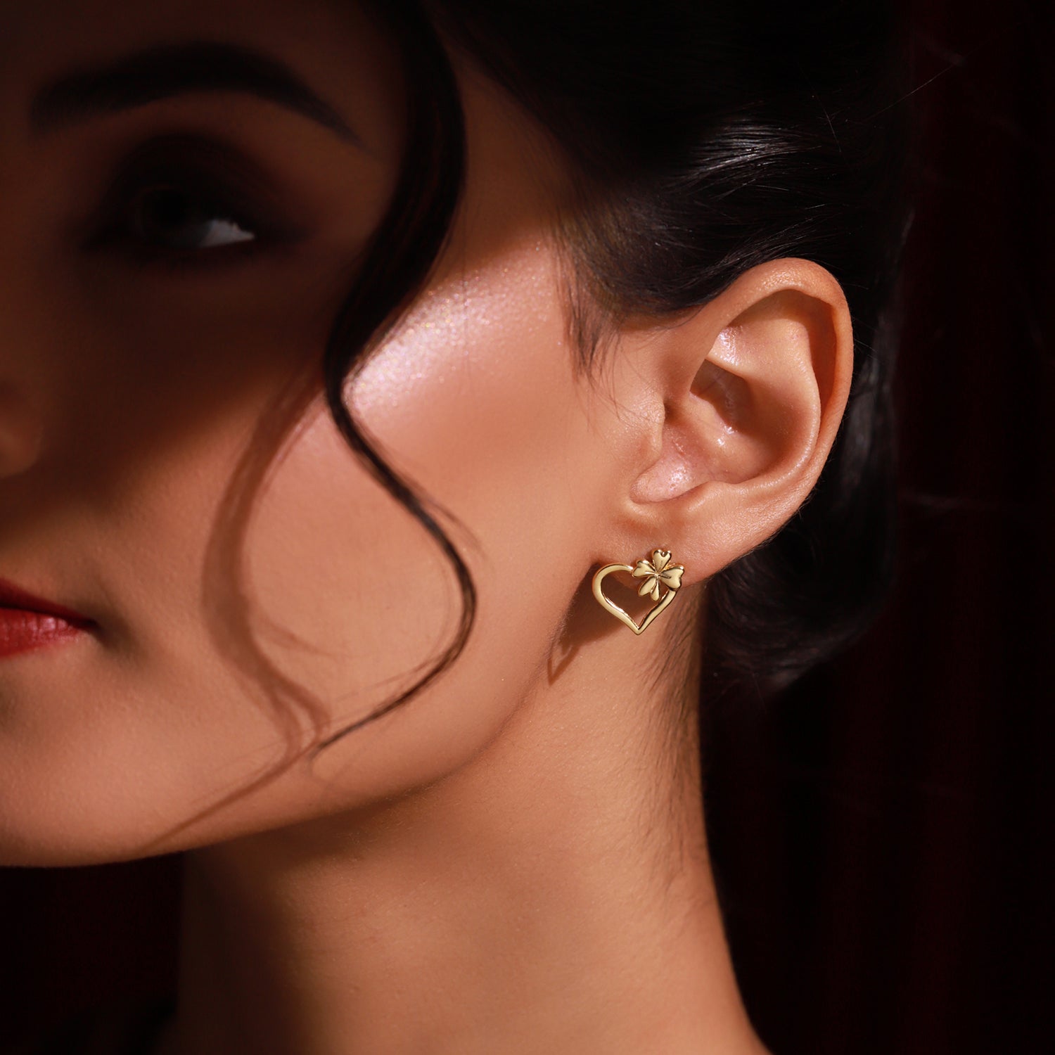 Introducing the Lucky in Love Clover Heart Earrings, crafted under our romantic Valentine’s Day Collection, created to celebrate affection, joy, and emotional connection. These charming women earrings feature a sweet open-heart outline paired with a delicate clover-inspired top, symbolizing the intertwining of love, luck, and positive energy. Made with premium 925 sterling silver and finished with an elegant yellow gold e-coat, these earrings offer the look of true gold with excellent durability and lasting shine. The e-coating ensures the surface remains resistant to fading, tarnishing, and discoloration, while being gentle on the skin and comfortable for everyday use. The warm gold tone enhances their charm, ideal for wearing with daytime outfits, romantic dresses, chic casual looks, or festive ensembles. These sterling silver earrings are a meaningful expression of affection and a stylish companion for both everyday wear and special moments. Perfect as a gift for women, a romantic gift for lover, a heartfelt Valentine’s Day gift, or even a sweet self love symbol.