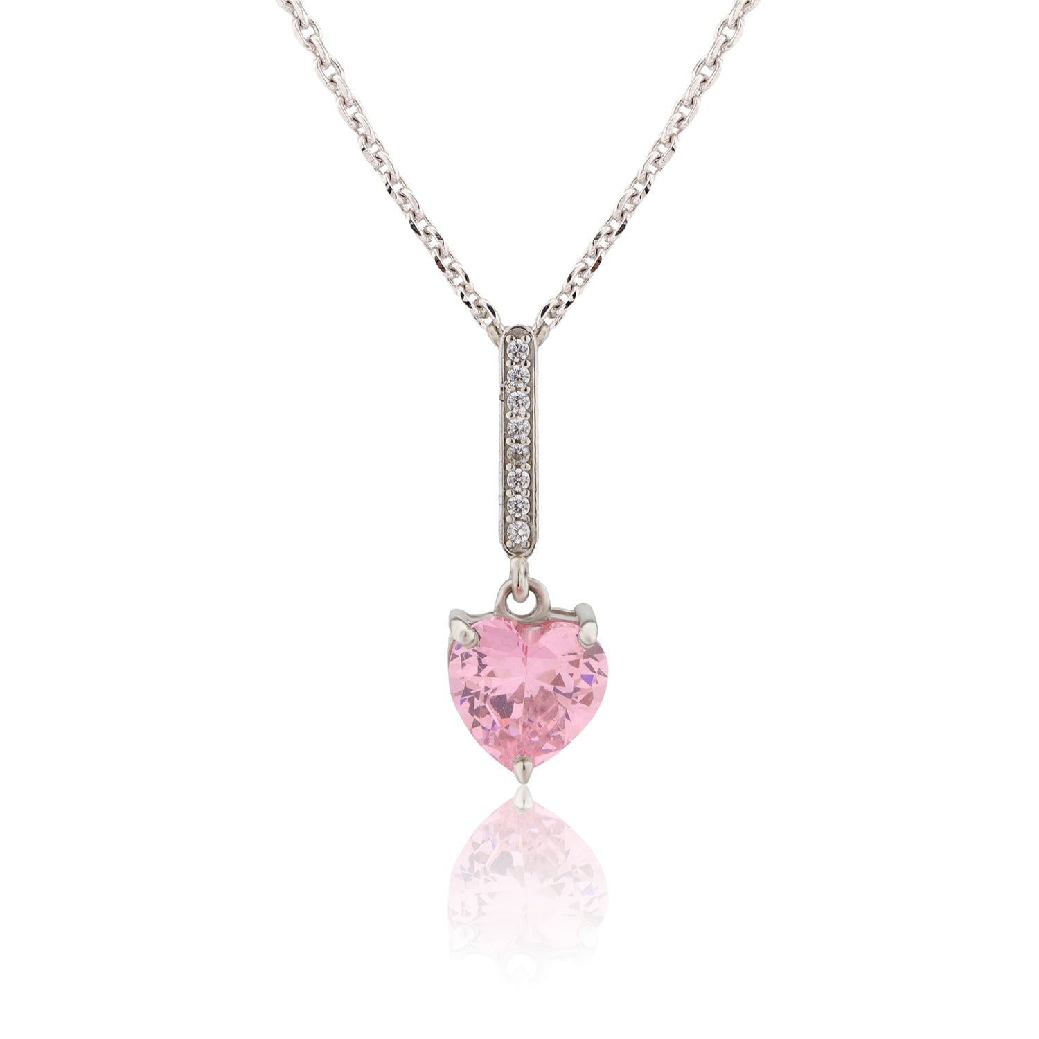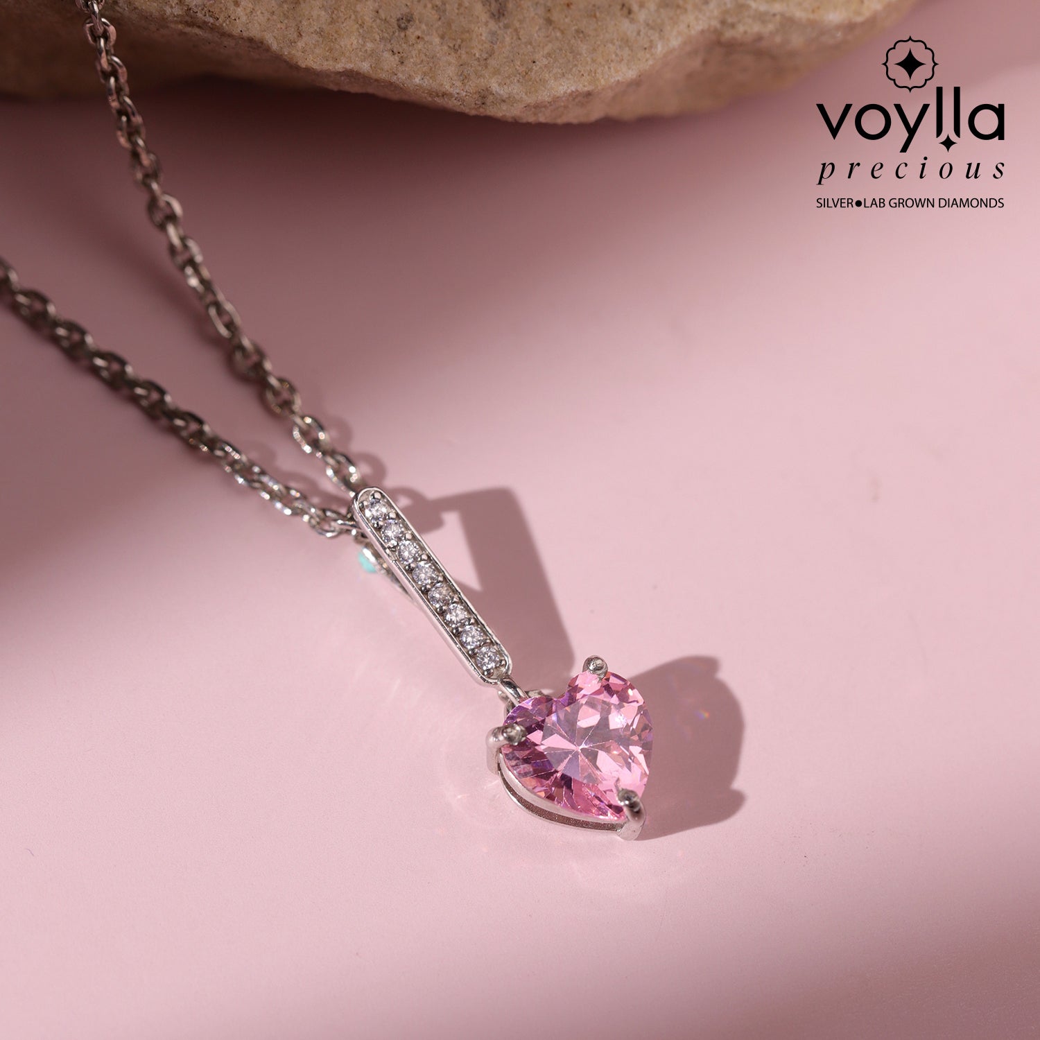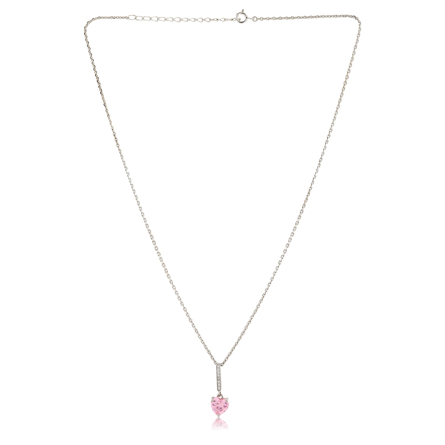 Introducing the Pink Whisper Heart Pendant, a beautifully romantic piece from our timeless Valentine’s Day Collection, designed to celebrate delicate femininity and heartfelt connection. This sterling silver pendant features a radiant heart-shaped pink gemstone that glows softly with every angle of light, suspended from a refined vertical CZ-accented bar, creating a stunning drop effect that is both elegant and expressive. This design merges youthful charm with graceful sophistication: the pink heart represents devotion, tenderness, and affection, while the polished silver and lined CZ bar signify clarity, loyalty, and emotional stability. Crafted with precision in genuine 925 sterling silver, and finished with luxurious white rhodium plating, this pendant offers exceptional shine, durability, and hypoallergenic comfort, making it perfect for everyday wear as well as treasured moments. Whether worn solo for a feminine highlight, layered with subtle chains for chic styling, or gifted to someone special, the Pink Whisper Pendant embodies love in its purest and softest form, a small yet meaningful reminder of connection, affection, and radiant joy. Ideal as a gift for women, a romantic gift for lover, or a meaningful gift for self, celebrating personal beauty and emotional warmth.