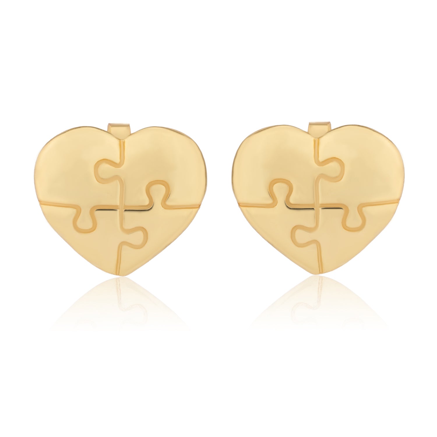 Introducing the Puzzle of the Heart Earrings, designed for our heartfelt Valentine’s Day Collection, celebrating the idea of two imperfect pieces that complete each other. These elegant women earrings feature a heart-shaped form with puzzle-cut detailing that symbolizes connectedness, compatibility, and the beautiful complexity of love. Crafted in high-quality 925 sterling silver and coated with a premium yellow gold plating, these earrings offer both luxurious radiance and durability. The smooth reflective surface gives a mirror-like glow, making them perfect for effortless style, whether worn daily or on special occasions. Lightweight, skin-friendly, and designed with a meaningful motif, these sterling silver earrings are not just accessories but expressions of emotion. Whether they serve as a romantic gift for lover, a thoughtful women gift, or a symbolic gift for self, these puzzle heart earrings make a touching reminder of love, bonding, and emotional closeness.
