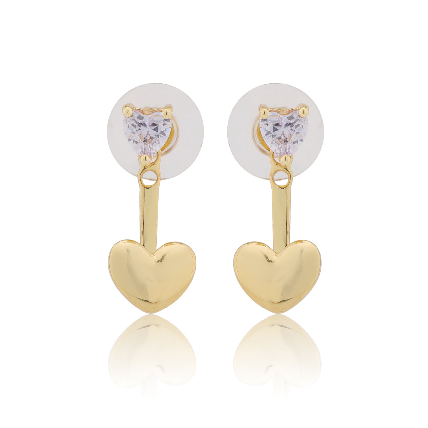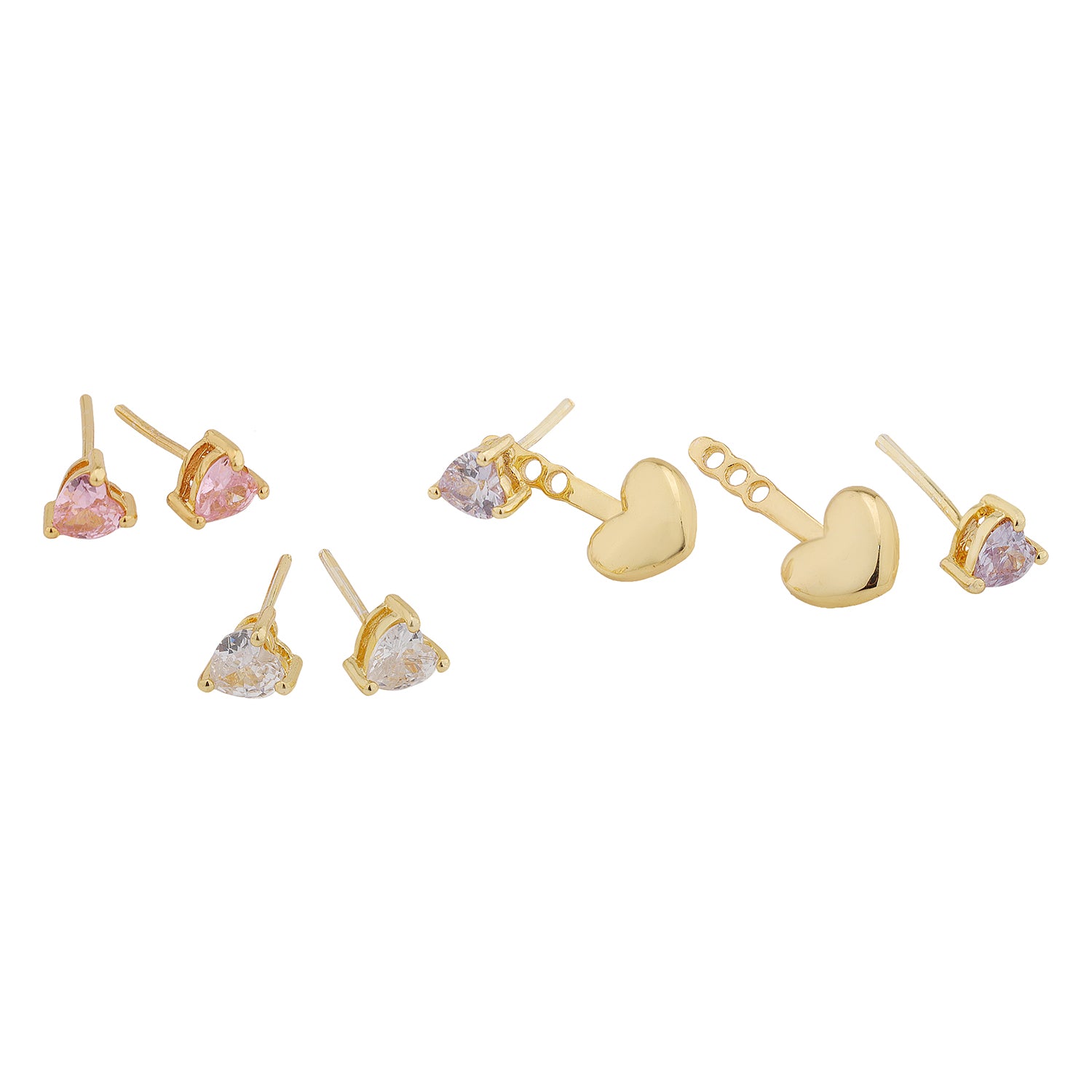 This Valentines Day Interchangeable Heart Drop and Two Cubic Zirconia Stud Earrings Set is designed for the woman who loves playful fashion versatility with a touch of romance. The set includes one pair of signature gold heart drop earrings and two interchangeable CZ stud toppers - one featuring soft pink Cubic Zirconia and the other featuring sparkling clear American Diamond stones. You can wear the studs alone for minimal chic looks or attach the heart drops to transform them into statement dangler Earrings for Women. Crafted in premium brass and finished in radiant yellow gold plating, the earrings deliver rich shine, smooth edges and comfortable wear all day long. The CZ stones mimic the brilliance and sparkle of real diamonds, adding youthful charm and elegance. This set allows you to create multiple style combinations from one jewellery product, modern, romantic and feminine, making it a perfect addition to your personal jewellery wardrobe and also a thoughtful gifting pick. Ideal as valentines day gift, galentine day surprise, women gift, gift for lover, or gift for self to celebrate your own shine and style.