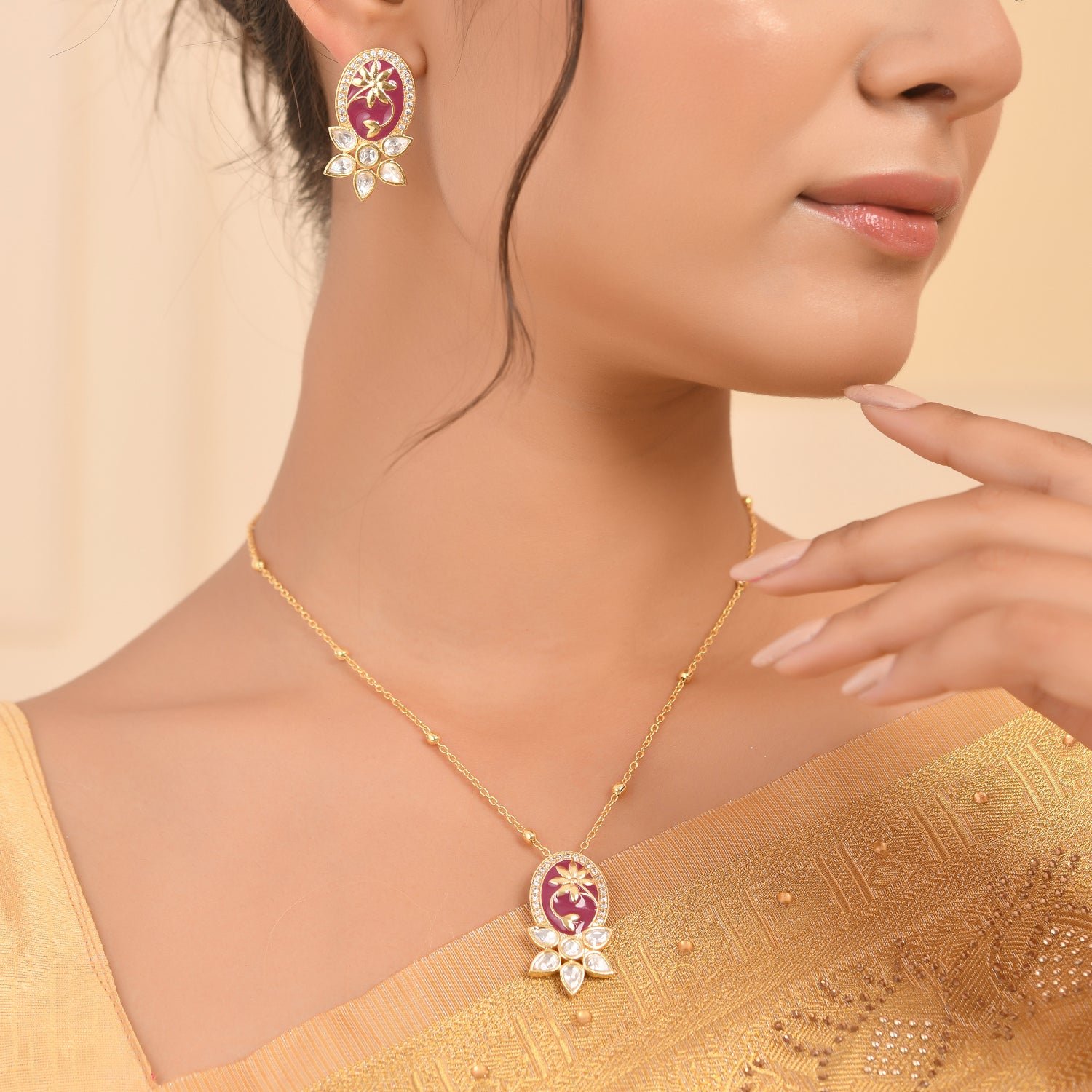 Voylla's Pashmina Collection, a stunning tribute to the intricate artistry of traditional Pashmina shawls and Baroque opulence. Each piece, from the Regal Floral Necklace with its gold-embossed floral motifs and sparkling reverse American diamonds, to the Baroque Elegance Earrings that...