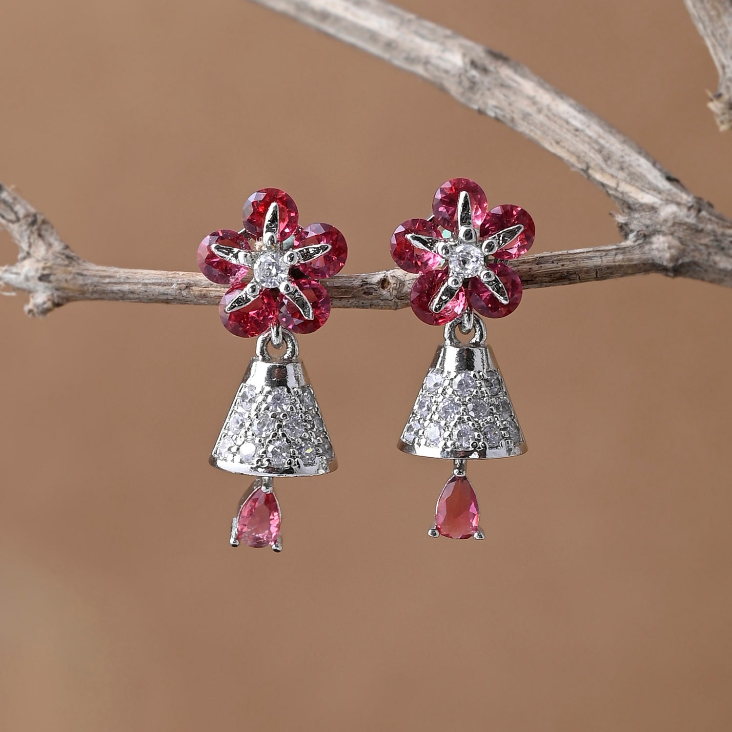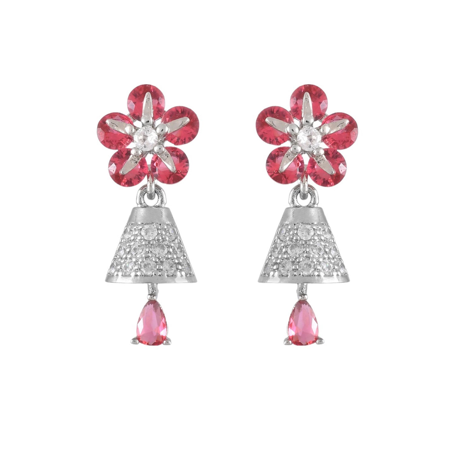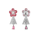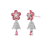 Sparkly drop earrings, perfect for casual wear. Made from brass and silver plated, the pair has been embellished with pink and white CZ gemstones. Versatile and comfortable.