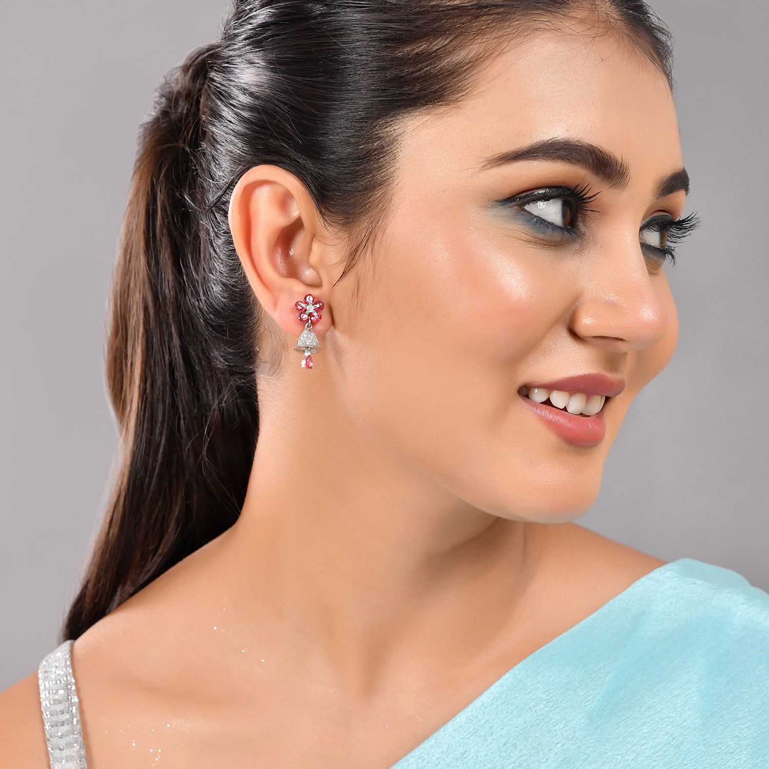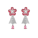 Sparkling Elegance Pink And White Cz Casual Drop Earrings