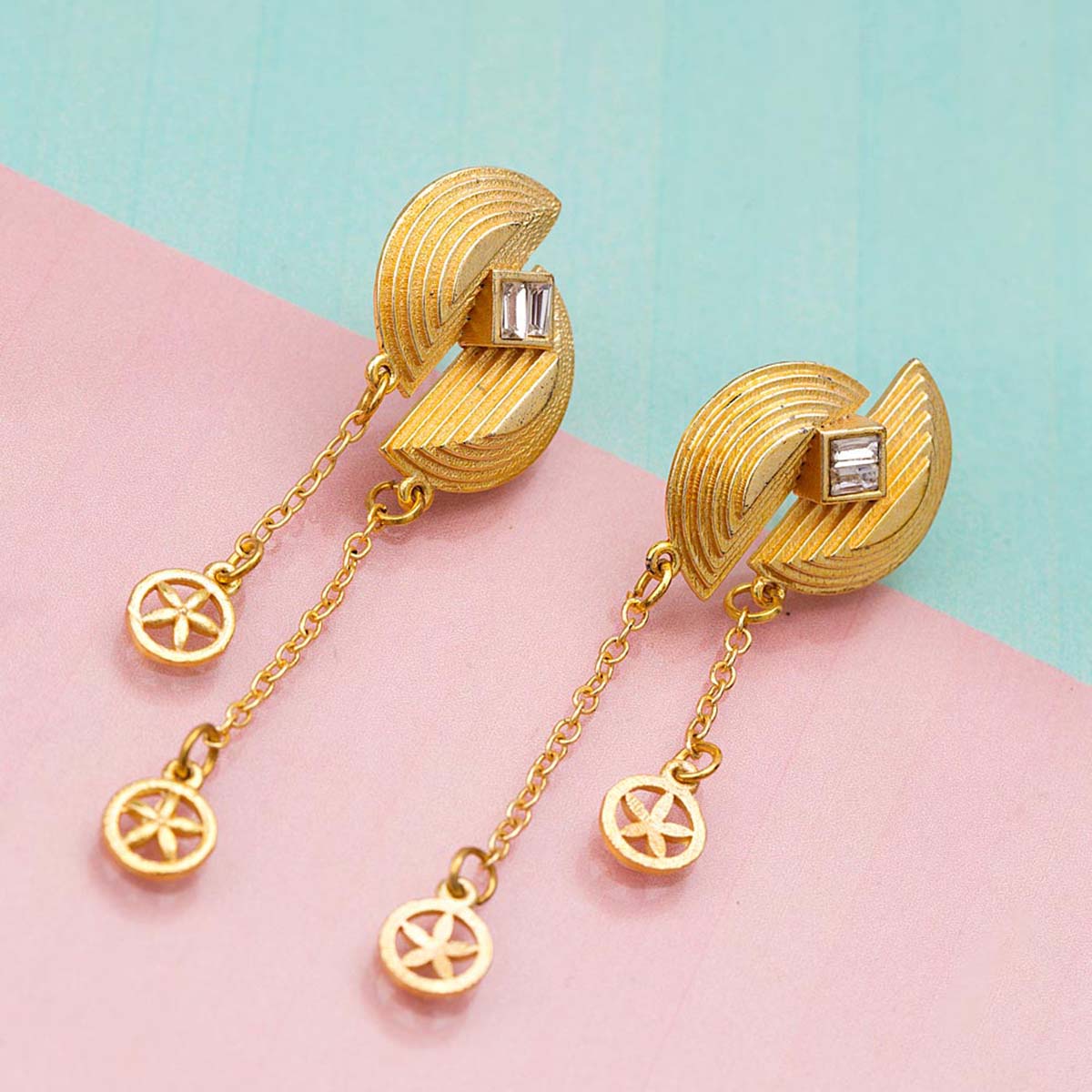 Dainty and elegant hoop style earrings, designed as a tribute to Arabesque designs, which adorn landscapes and décor of some of India's most popular monuments. Brass has been used in the making of these gold plated hoops, which have been...