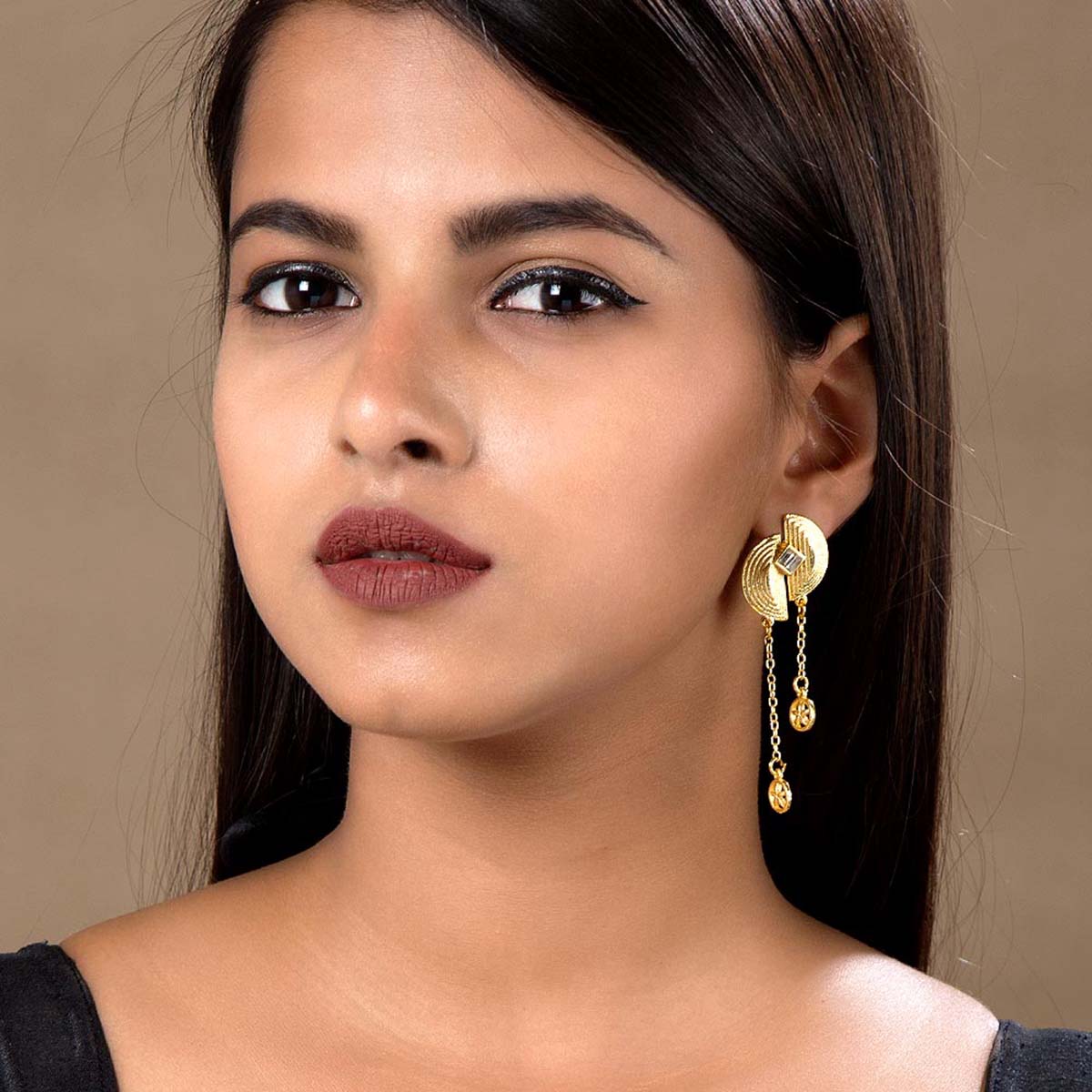 Make a bold statement with these Gold Plated Half Pearl and Pear Shaped Stone Studded Earrings from our Mothers Day Collection. These earrings feature a unique design with half pearls and pear-shaped stones studded along the layers of the earring....