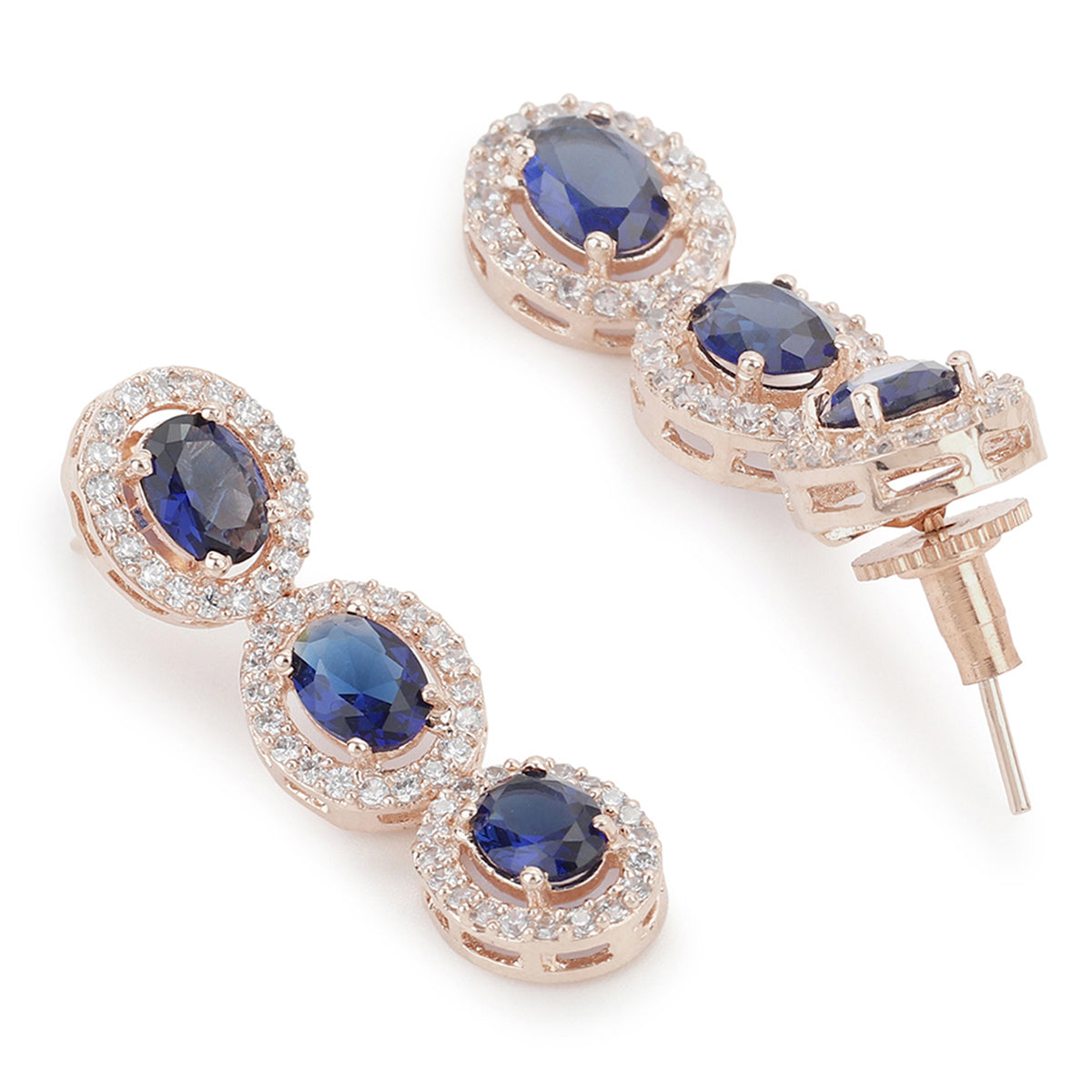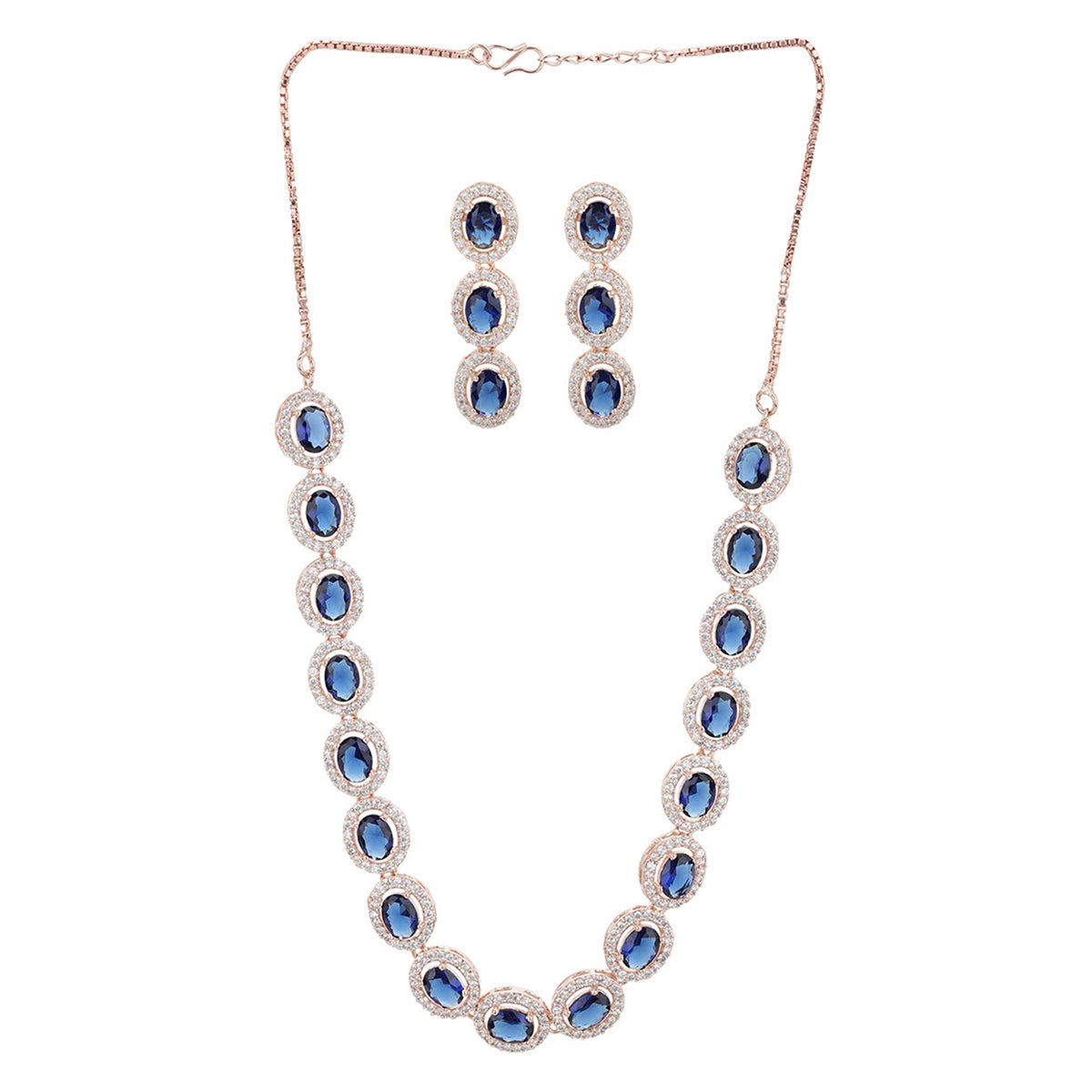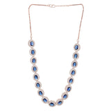 CZ Rose Gold Plated Necklace Set with Blue Stones