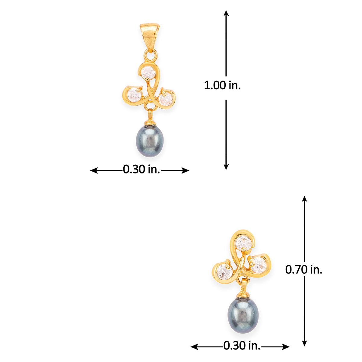 This pendant set is tastefully designed to steal everyone's attention in the most subtle way possible. The gold plating makes you look elegant and stylish while imparting a classy appeal. Crafted with high-quality brass and American Diamond stones, this set is thoughtfully designed with utmost precision to meet your every sparkle need. You can wear it as a piece of everyday jewelry, with office wear, or add it to your casuals for a classy and smart look.