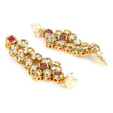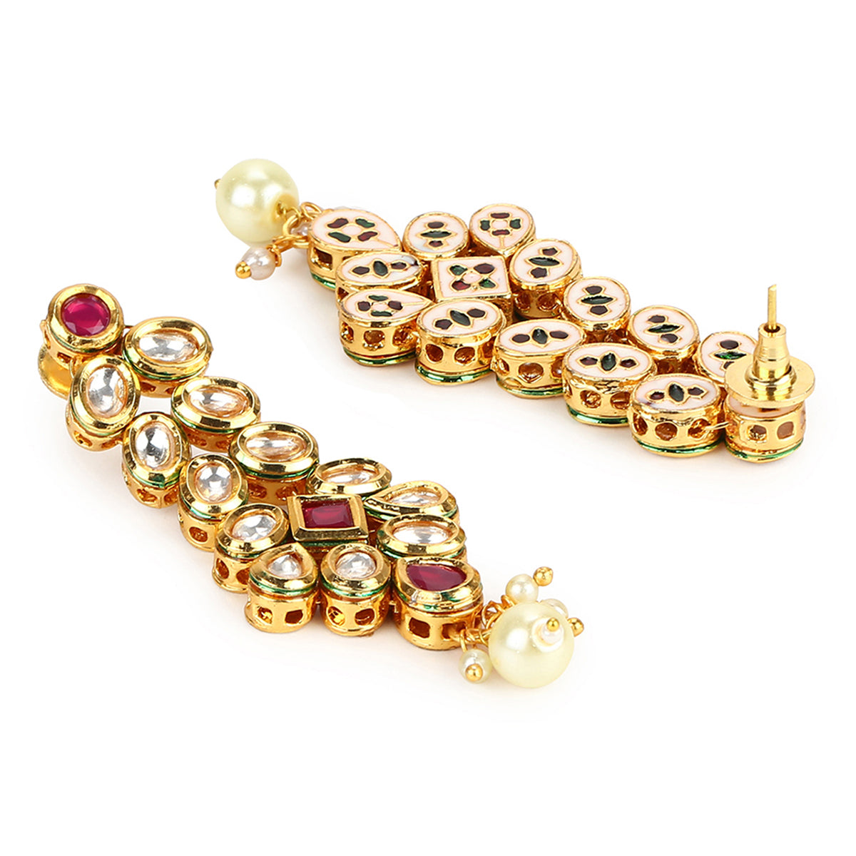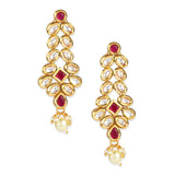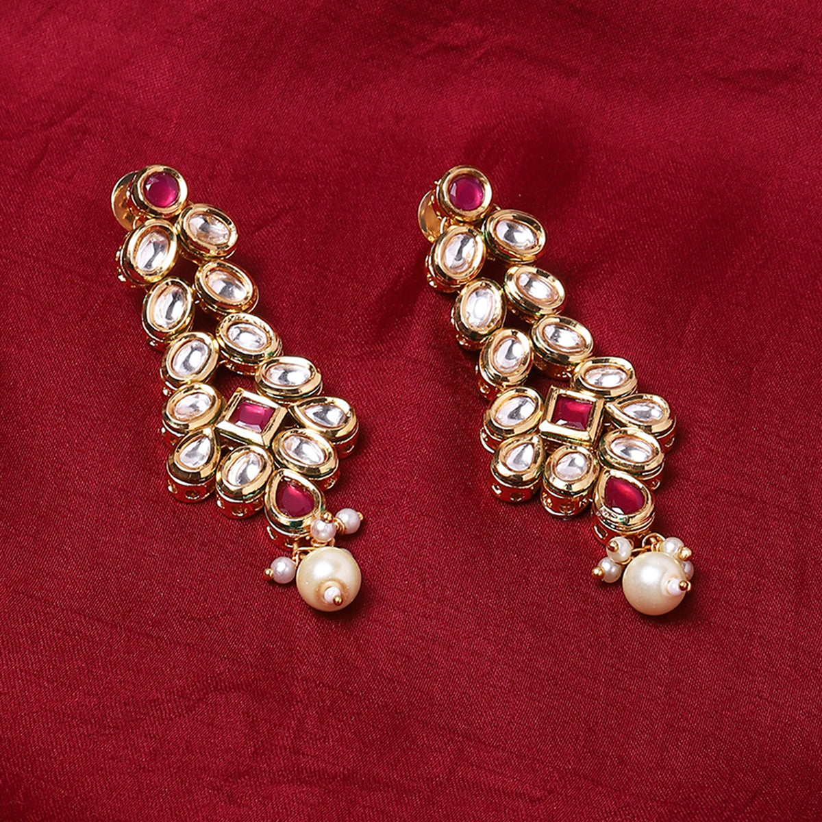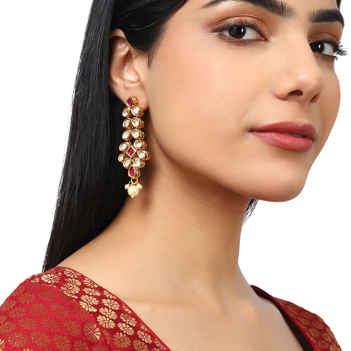 The beautiful gold plated brass earrings in kundan have height that adds length to the face. Shows beauty and grace at the same time so that you don't hesitate to wear it conveniently at any occasion