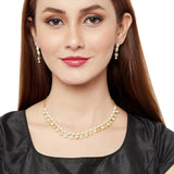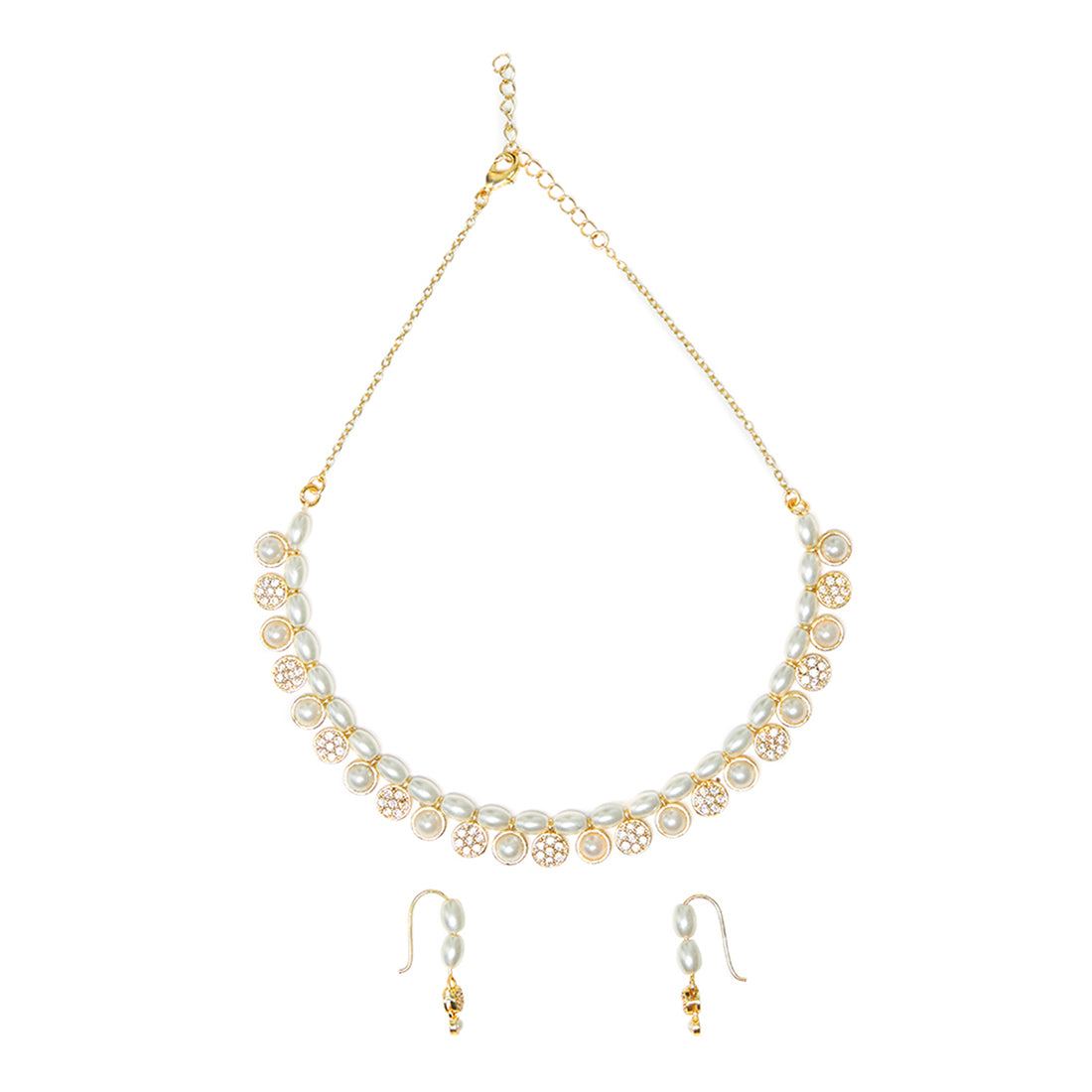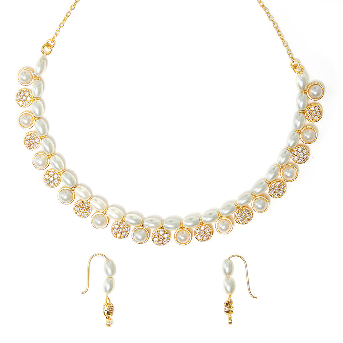 Now beat the epitome of styling and fashion with this remarkable necklace set. The artistic design on the gold toned exterior with CZ sparkles will express your attitude to the extreme. So don't wait to get your hand on it.